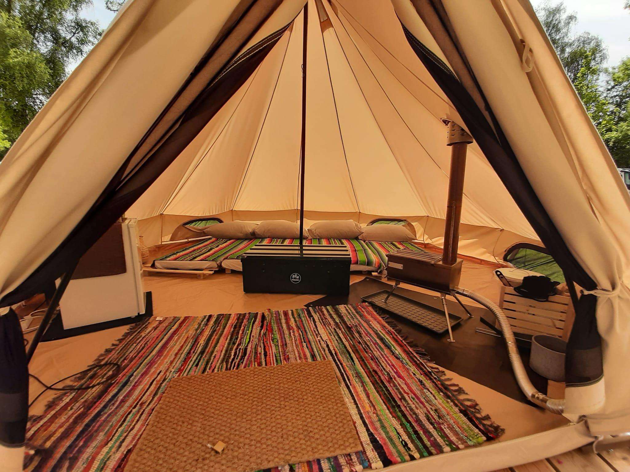- Ofen mit Holz zum Beheizen des Zeltes (in den Übergangszeiten)