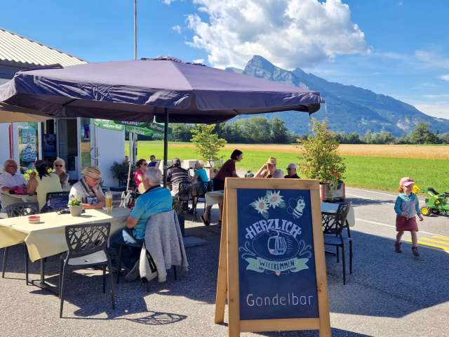 Im Sommer bieten sich erfrischende Glacés im gemütlichen Aussenbereich sowie Spielmöglichkeiten (Rolltoys) für Kinder. Die Gondelbar an der Talstation der Pizolbahnen in Bad Ragaz, ist im Sommer als auch im Winter der Ideale Treffpunkt mit Freunden und Bekannten - oder einfacher, ein Platz zum geniessen!