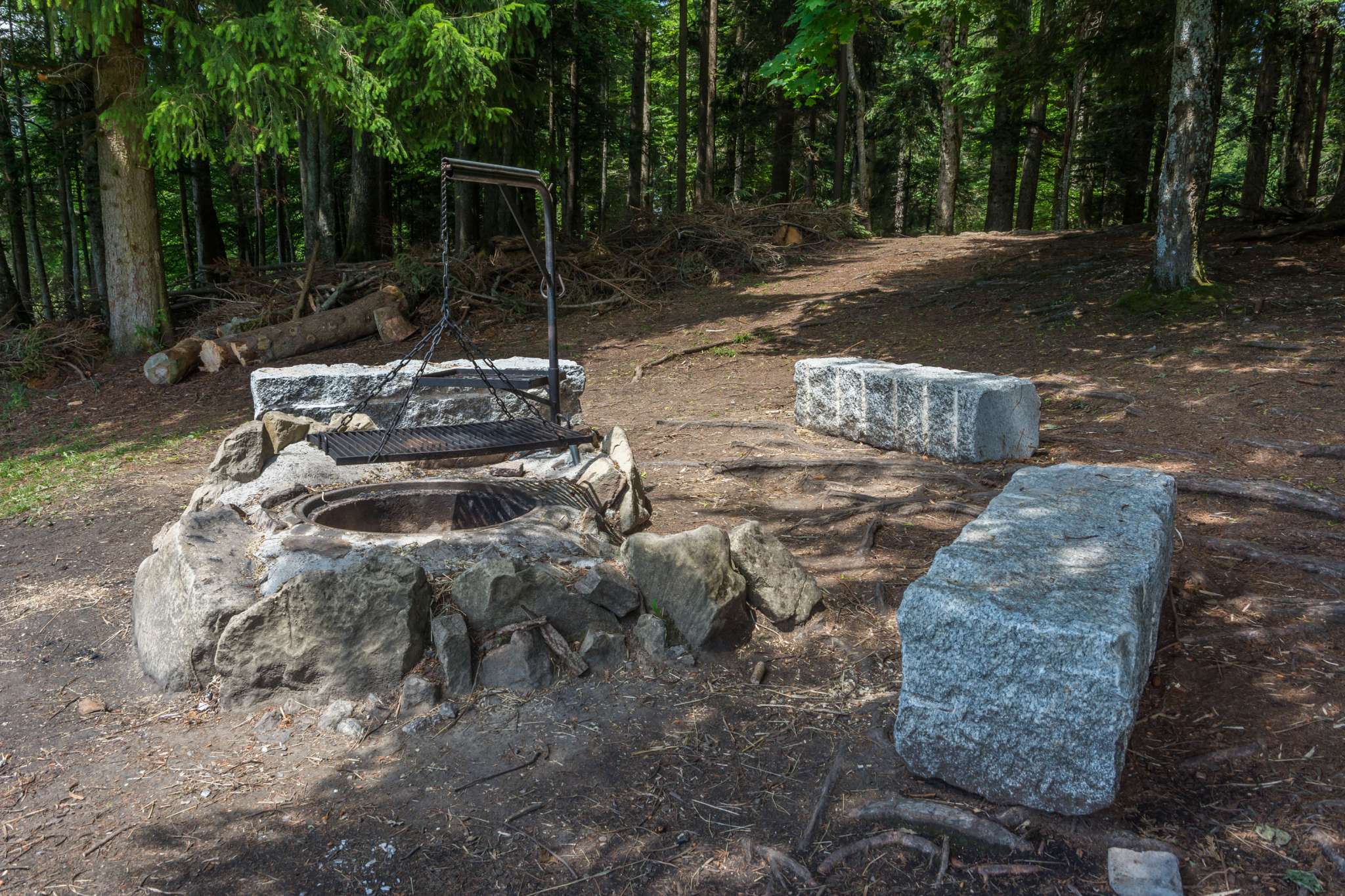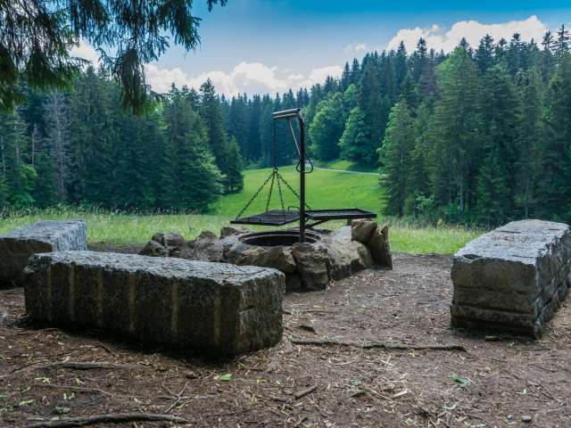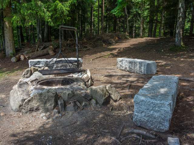 Mit dem Kinderwagen gut erreichbarer Grillplatz am Waldrand.
