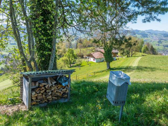 Der Grillplatz Geissberg liegt in einer kleinen Baumgruppe und bietet daher ausreichend Schatten. Die Feuerstelle ist auf drei Seiten mit Quadersteinen gemauert. Der rechteckige Rost kann nicht in der Höhe verstellt werden. Die Aussicht von hier ist wunderschön. Im Südosten erblickt man den Säntis und rechts davon ragen gerade noch einige Churfirsten hinter dem Hügel mit der Ruine Neutoggenburg hervor. Im Süden sieht man den Speer und rechts davon mit dem Glärnisch einen Teil der Glarner Alpen. Unten im Tal liegt Dietfurt und und links davon der Weiler Wigetshof, der zu Oberhelfenschwil gehört. Kinderwagentauglich: nein, Holz: ja, Trinkwasser: nein, WC: nein, Kapazität: ca. 12