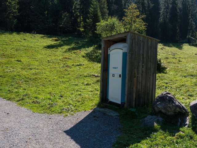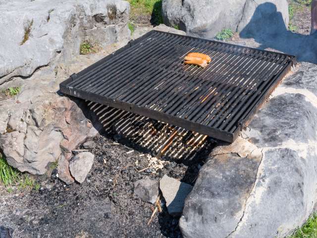 Der Grillplatz besteht aus einigen erodierten Kalksteinbrocken, die kreisförmig angeordnet wurden. Diese dienen als Sitzgelegenheit. Die Feuerstelle in der Mitte ist gemauert und verfügt über einen quadratischen Rost, den man in der Höhe nicht verstellen kann. In einer Kiste gibt steht ein kleiner Holzvorrat zur Verfügung. Ganz in der Nähe steht ein ToiToi-WC. Kinderwagentauglich: ja, Holz: ja, Trinkwasser: nein, WC: ja, Kapazität: ca. 10