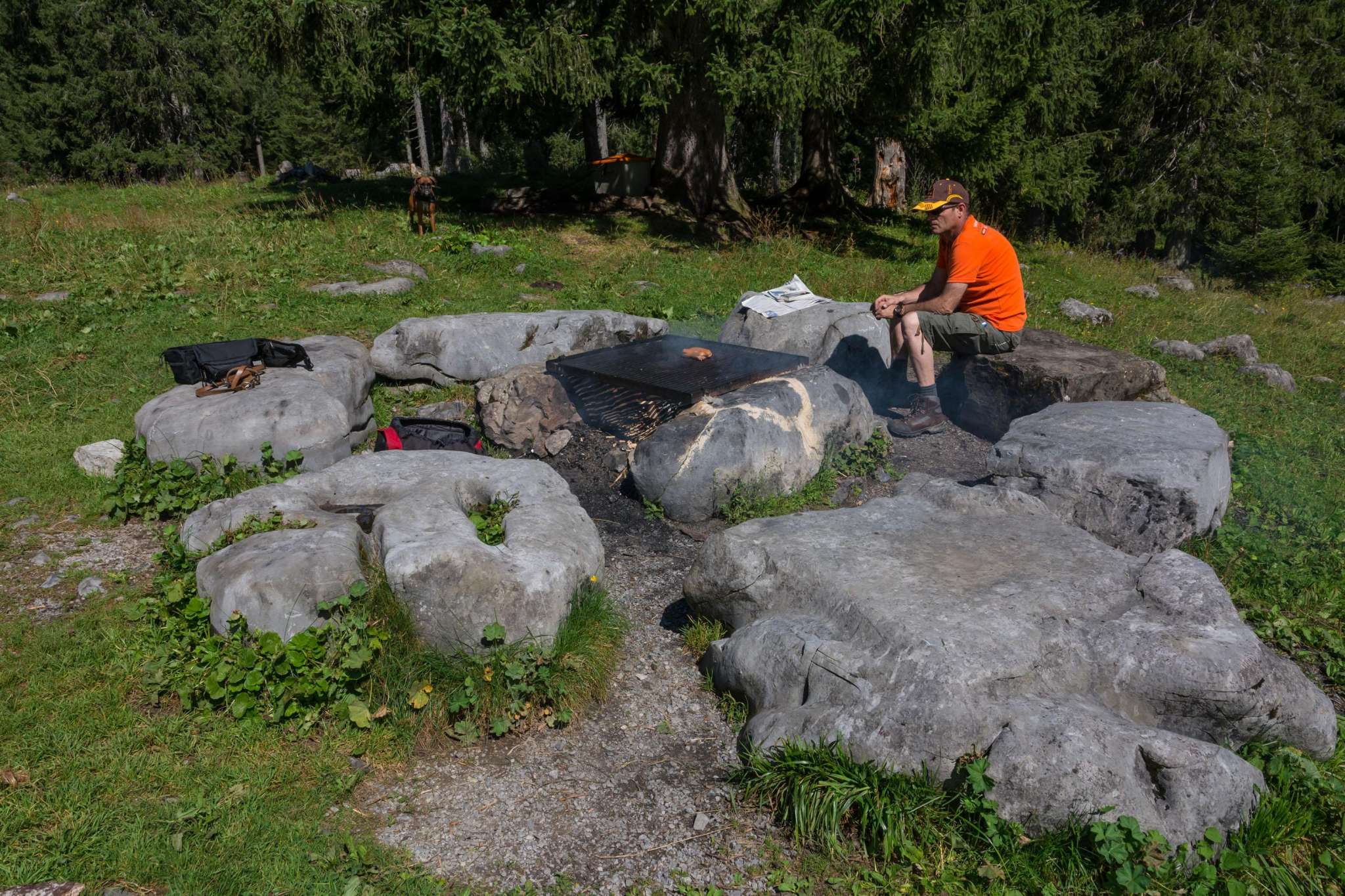 Kinderwagentauglicher Grillplatz entlang des Klangweges zwischen Sellamatt und Iltios.