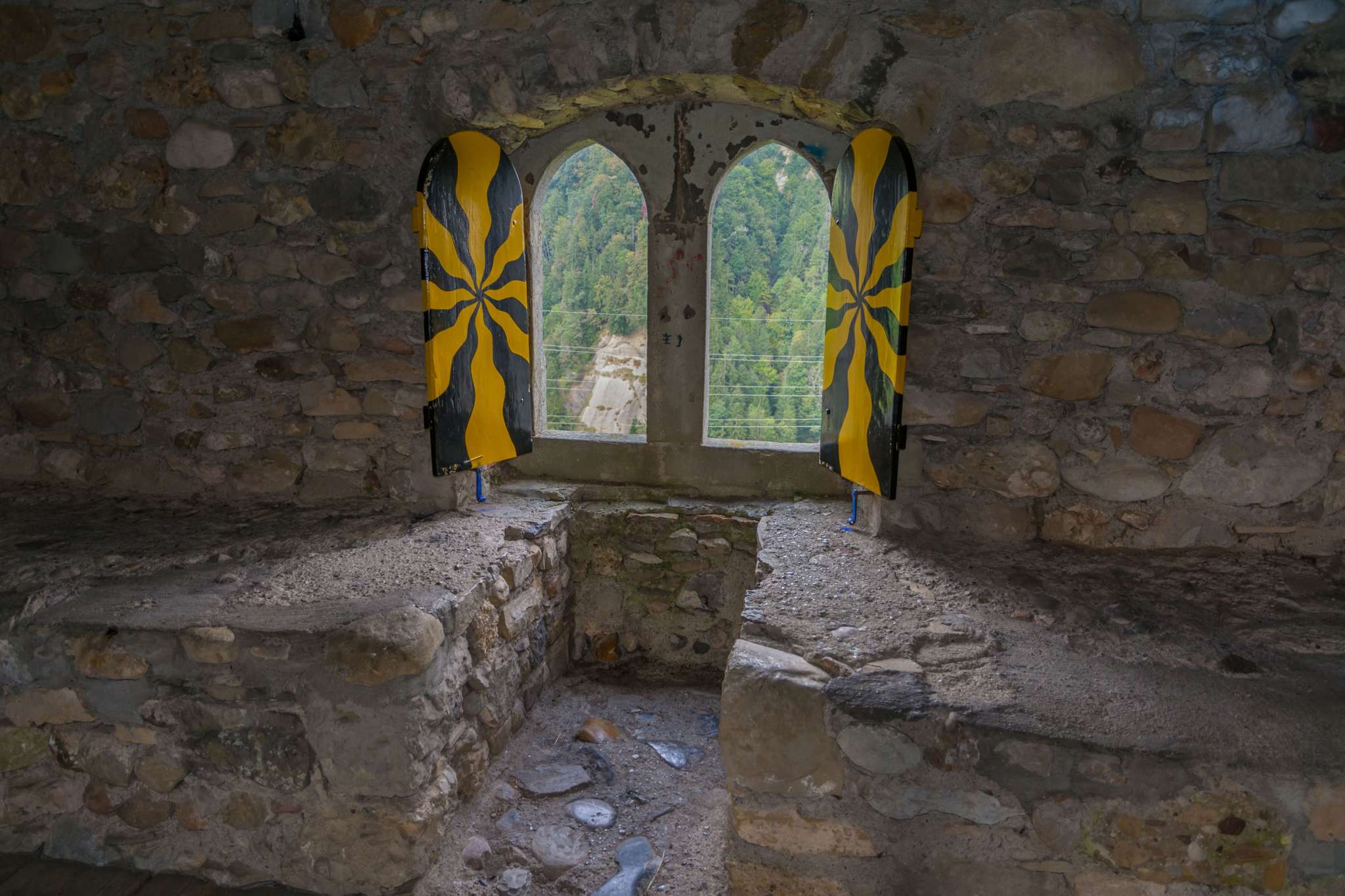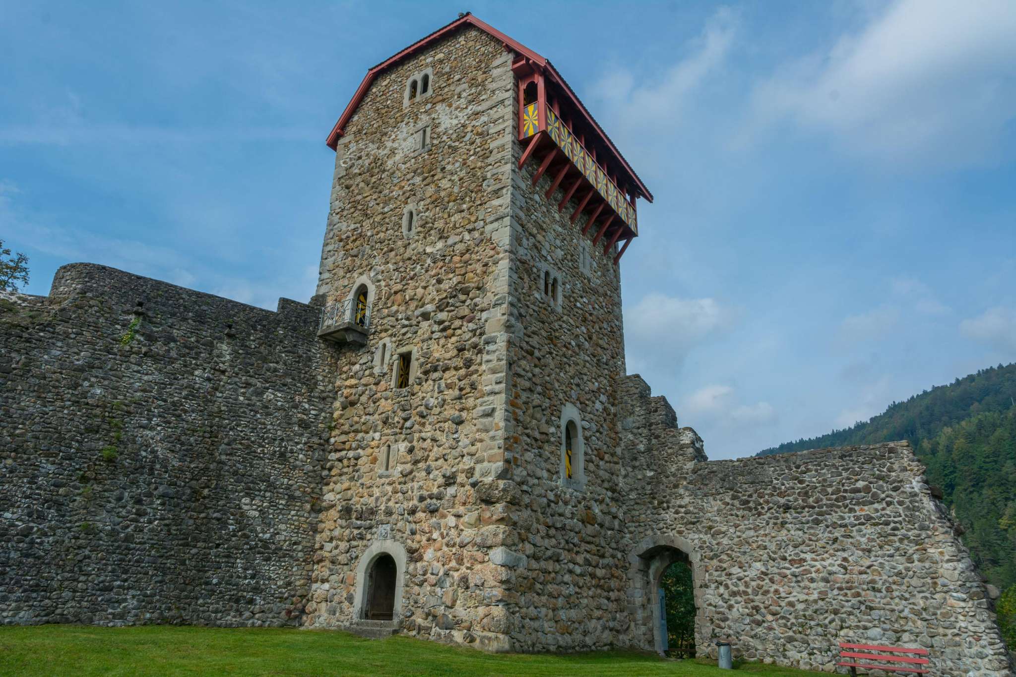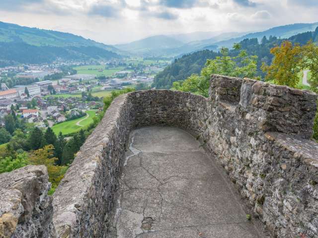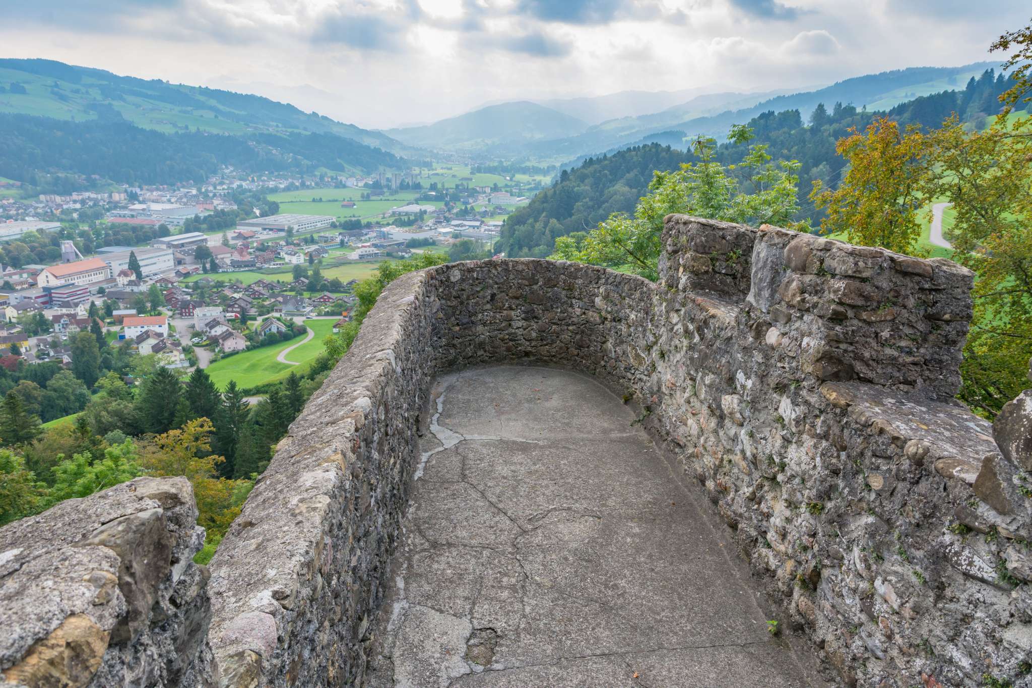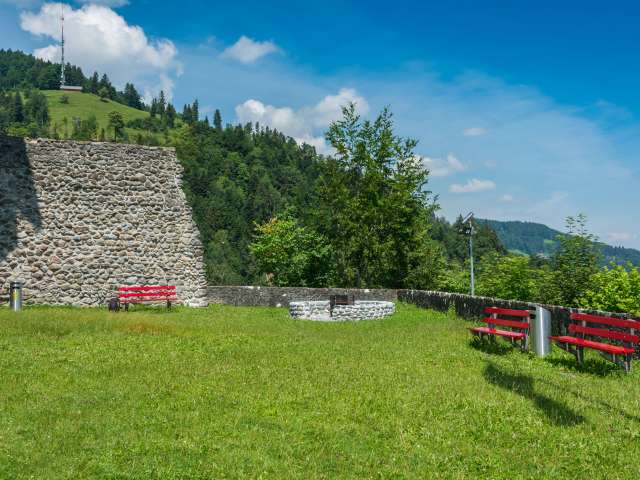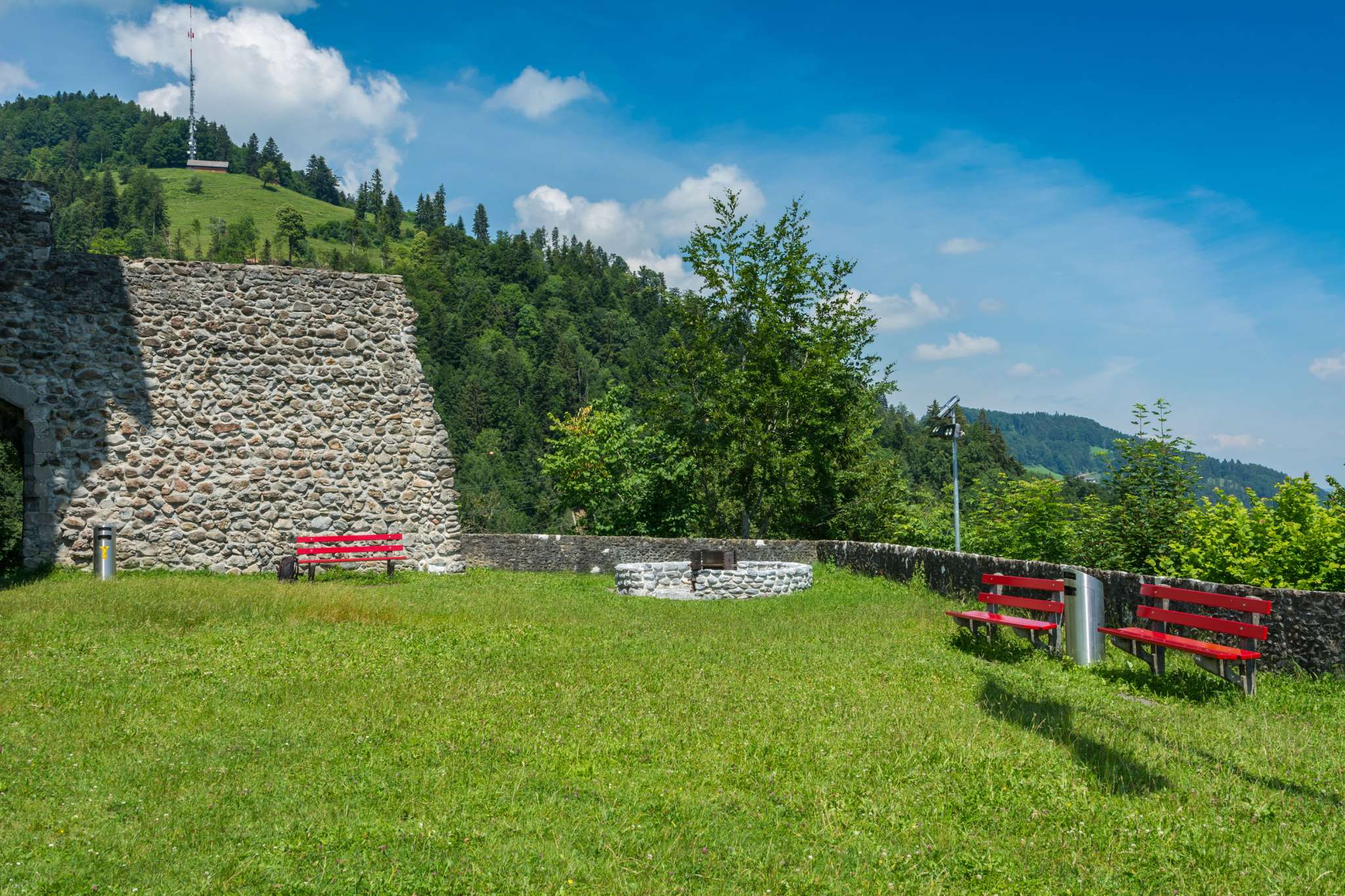 Friedlicher Grillplatz im Burghof der Iburg mit Blick ins untere Toggenburg.