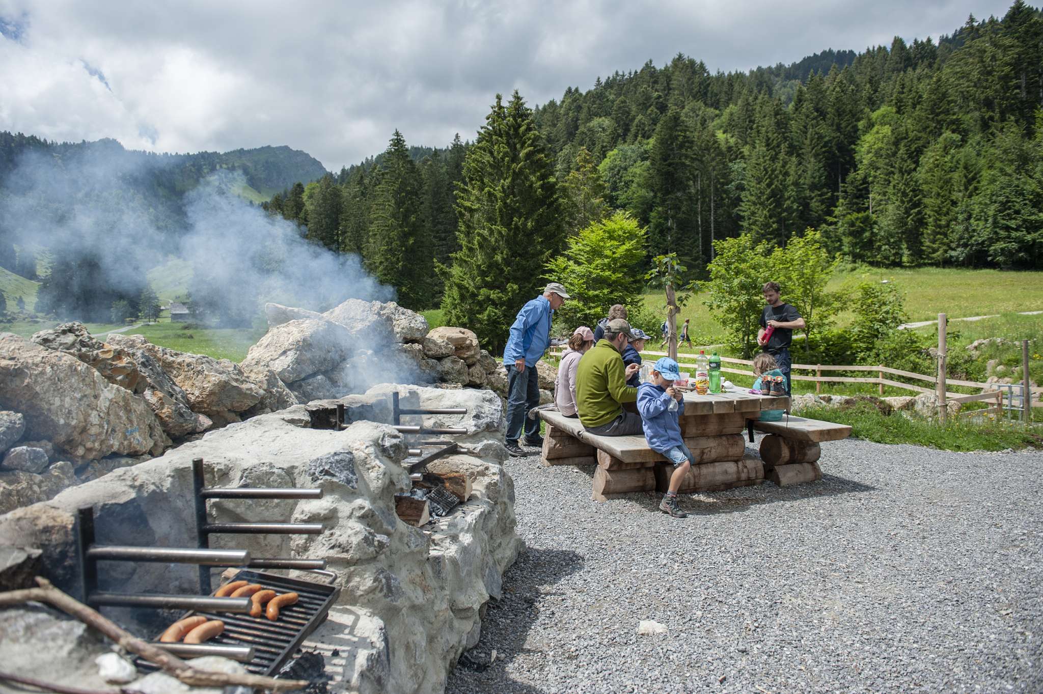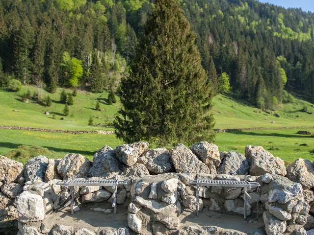 Im Ijental, oberhalb Nesslau, befindet sich diese gut eingerichtete Feuerstelle. Sie liegt am Klimaerlebnisweg Toggenburg.