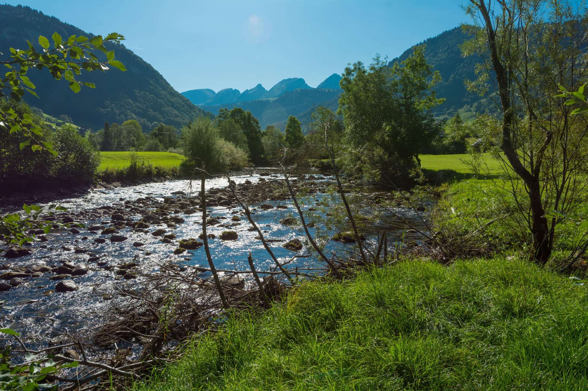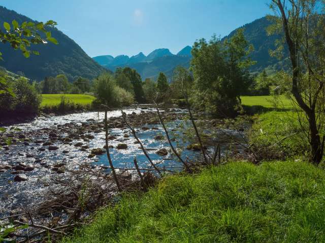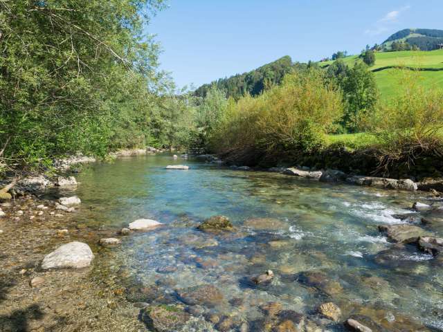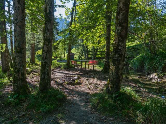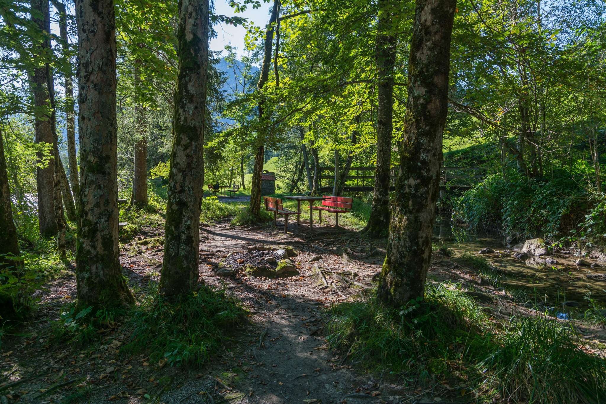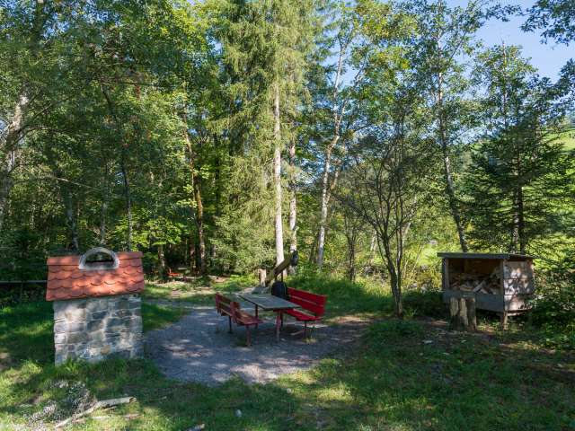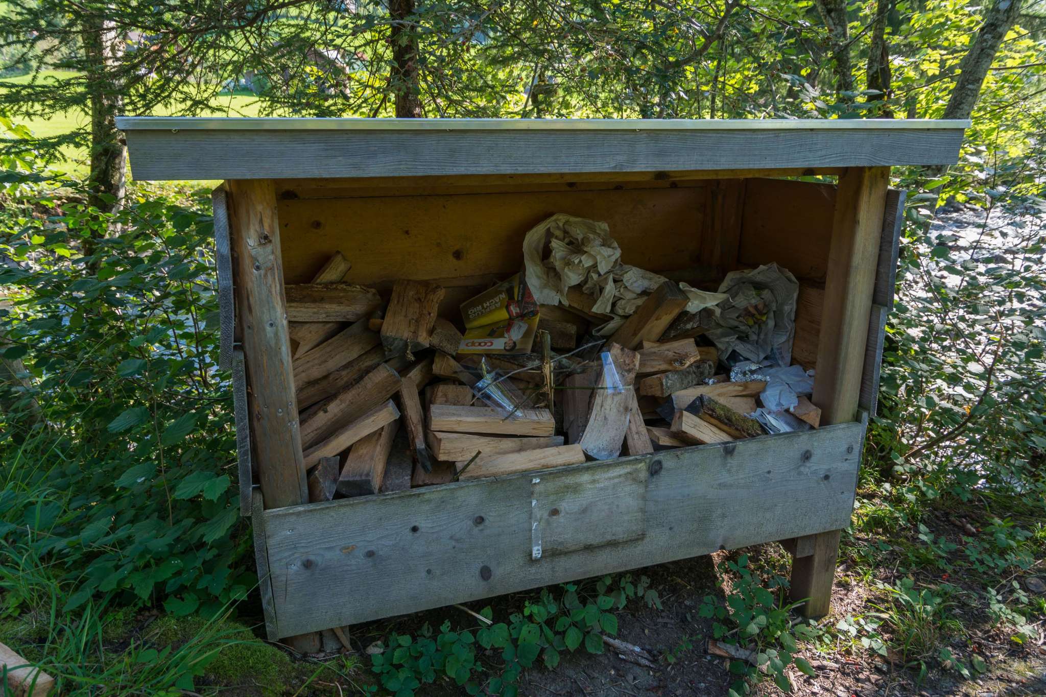 Einfacher Grillplatz auf einem Inseli in der Thur, mit Holz und Gigampfi.