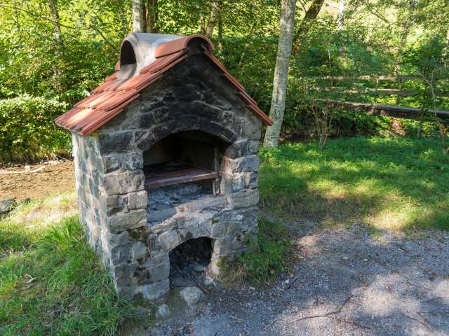 Der Grillplatz Inseli Stein liegt, wie es der Name schon sagt, auf einer kleinen Insel in der Thur. Diese erreicht man vom Wanderweg her über eine schmale Brücke. Hier steht sogar eine grosse Gigampfe. Die Feuerstelle ist gemauert wie ein Häuschen mit Kamin. Sie verfügt über einen rechteckigen Rost, der in der Höhe nicht verstellt werden kann. Gleich daneben steht ein Tisch mit zwei Bänken, dasselbe nochmals etwa 20 m entfernt. In einem kleinen Unterstand steht ein Holzvorrat zur Verfügung. Man hat einen schönen Blick auf die östlichen Churfirsten. Geocacher finden hier auch einen originellen Cache. Kinderwagentauglich: ja, Holz: ja, Trinkwasser: nein, WC: nein, Kapazität: ca. 16