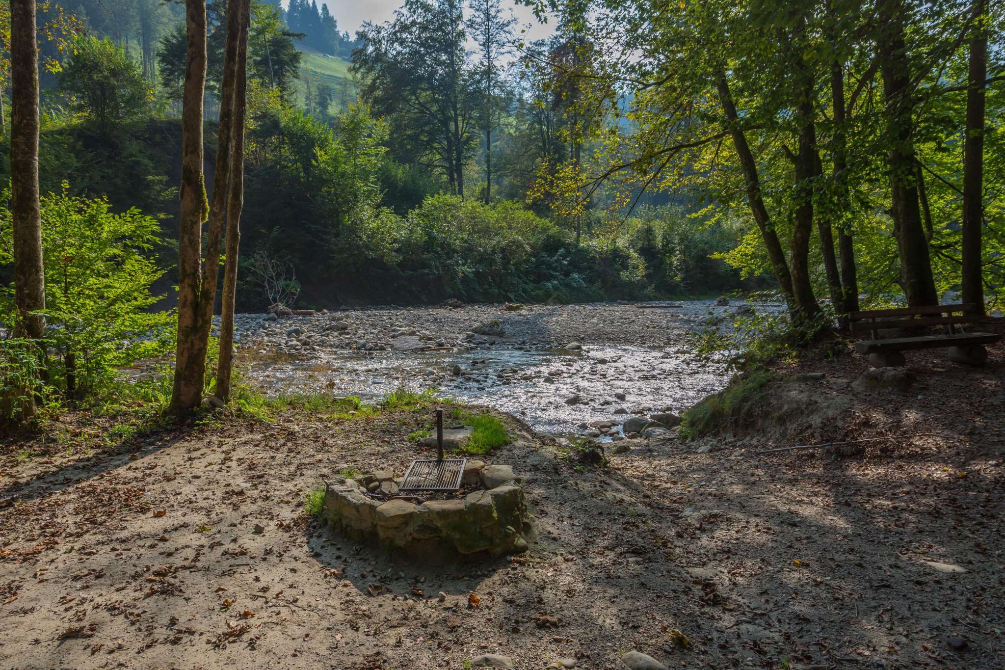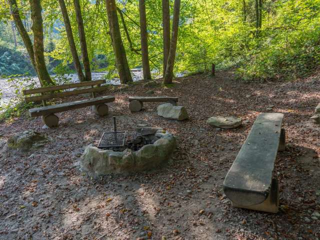 Drei Feuerstellen für mittlere Gruppen, wo der Tüfenbach in den Necker mündet.