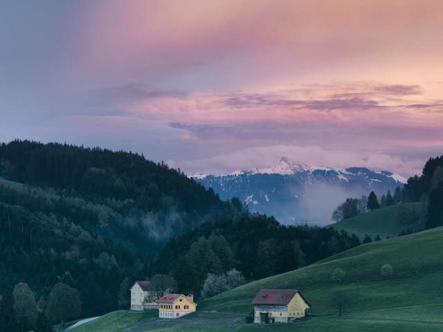 Auf erhöhter Lage über dem Dorf Heiden eröffnet das Gruppenhaus Müllersberg ein phantastischer Blick vom Bodensee bis zum Alpstein.
