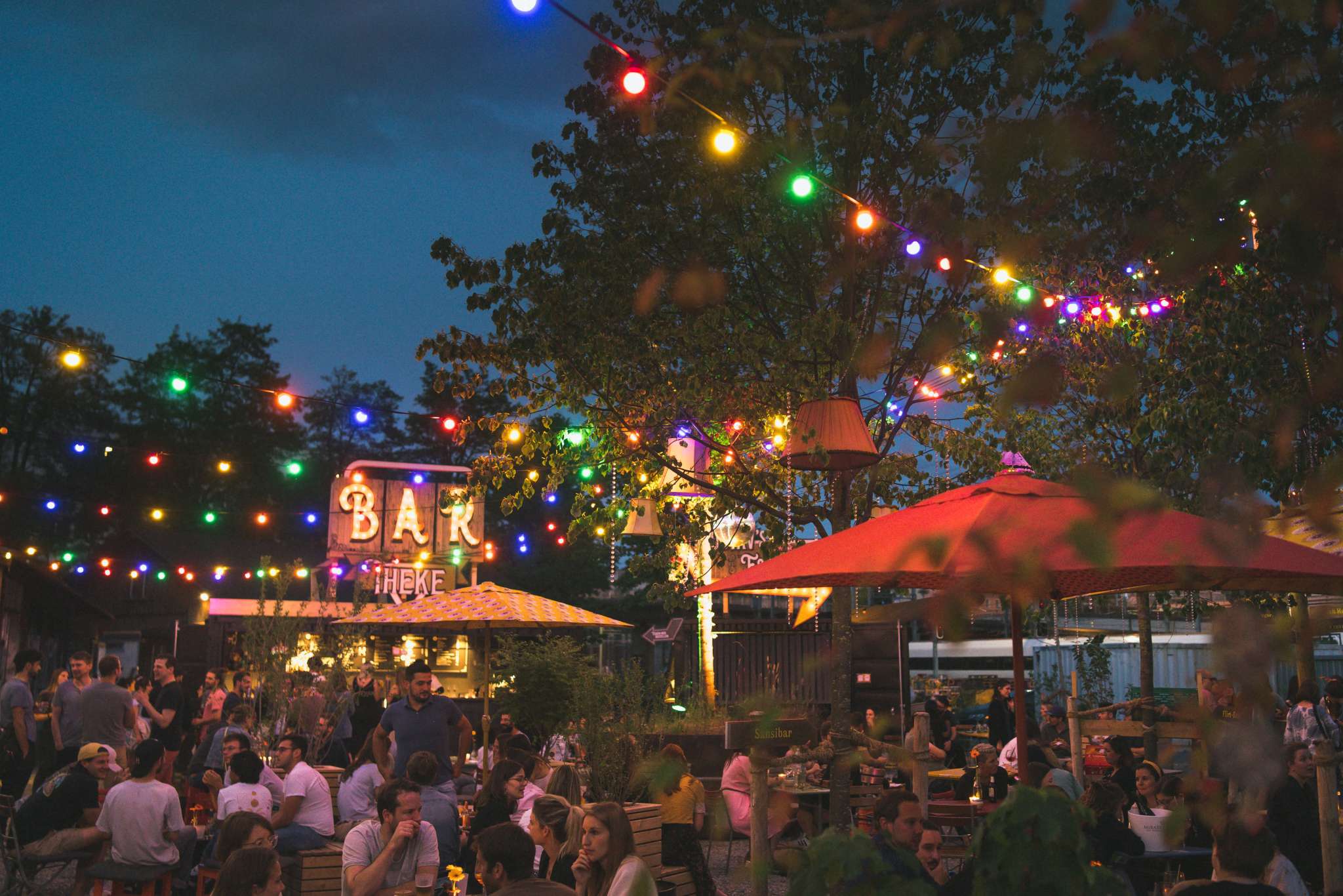 Beim Gustav Gleis trifft man sich zum Feierabendbier und zu feinen Speisen, umgeben von Bäumen und Sträuchern auf dem einzigartigem Kreativplatz.