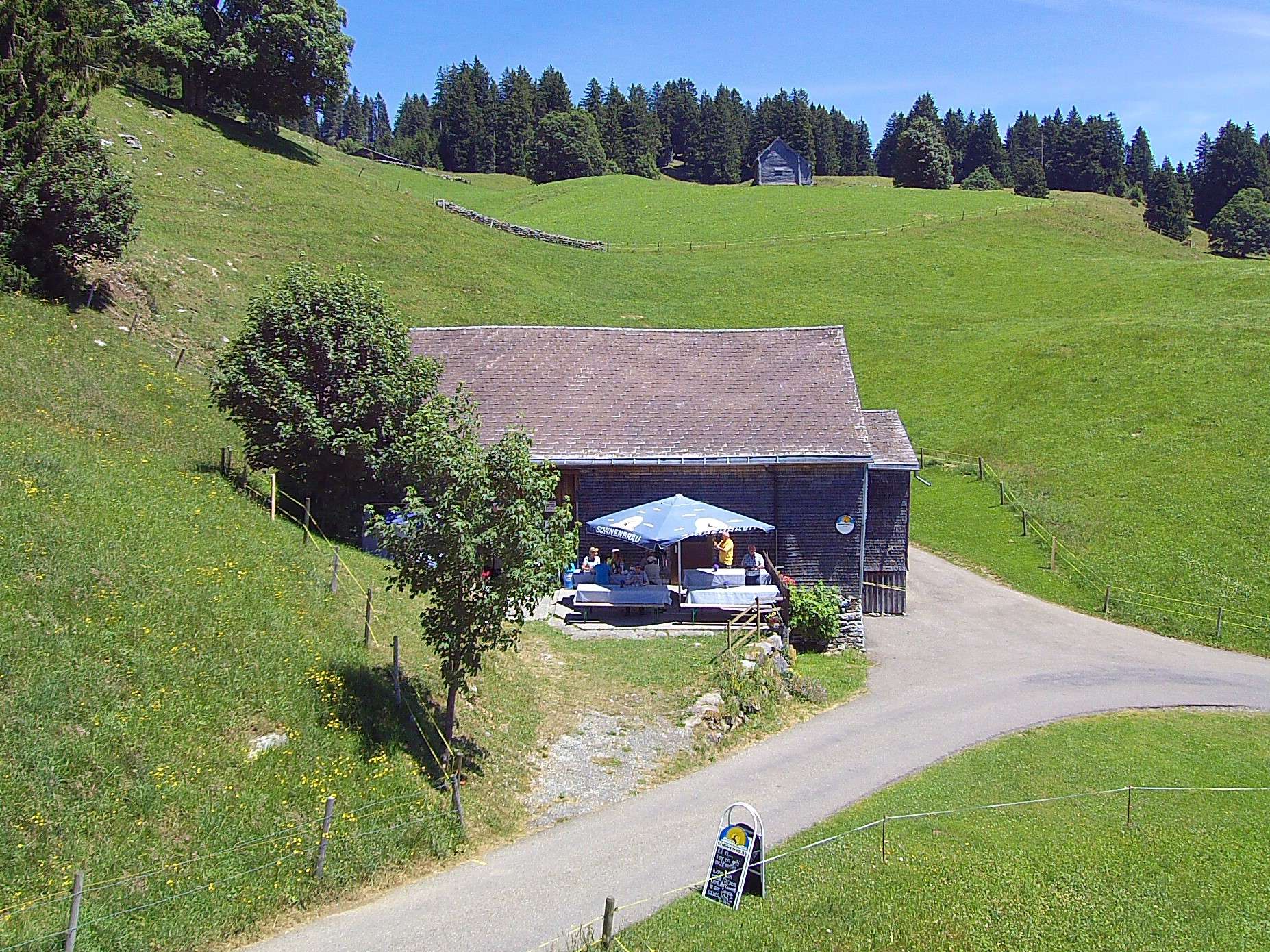 Nach ca. 30 Gehminuten über die Steinrütistrasse in Richtung Gamplüt, erreicht man das Hag-Beizli.