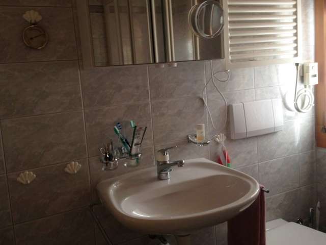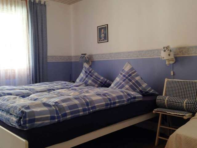Die helle Wohnung ist klassisch und gemütlich eingerichtet. Wohn- und Schlafräume verfügen über einen schönen Holzboden. Bilder und Deko verzieren die Wände und Regale.