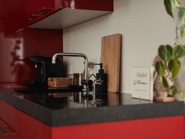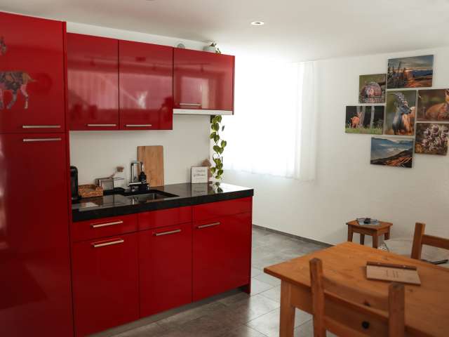Das kleine, feine Studio (Baujahr 2012) ist liebevoll und sehr modern eingerichtet. Es verfügt über einen eigenen Eingang sowie einen Sitzplatz mit Gartenstühlen und einen Tisch. und einem abschliessbarem Raum für Sportgeräte