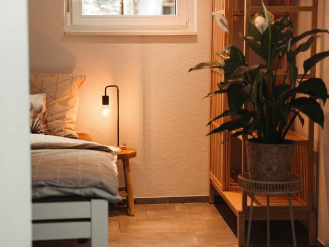 Das Haus Meierhüsli in Malans bietet ein modernes Studio mit eigenem Eingang und Sitzplatz. Ein abschliessbarer Raum für Sportgeräte steht zur Verfügung. Die zentrale Lage ermöglicht eine ruhige Umgebung.