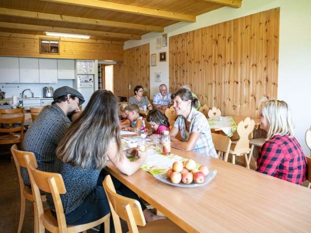 Der Bauernhof mit seinen Milchkühen, Mutterkühen, Rindern, Kälbern, Zwergziegen und Laufenten sowie auch die kleine Mosterei mit Brennerei bieten den Gästen ein wunderbares Erlebnis. Es besteht auch die Möglichkeit, im Stroh zu schlafen und am nächsten Tag einen feinen «Buurä-Zmorgä» zu geniessen.