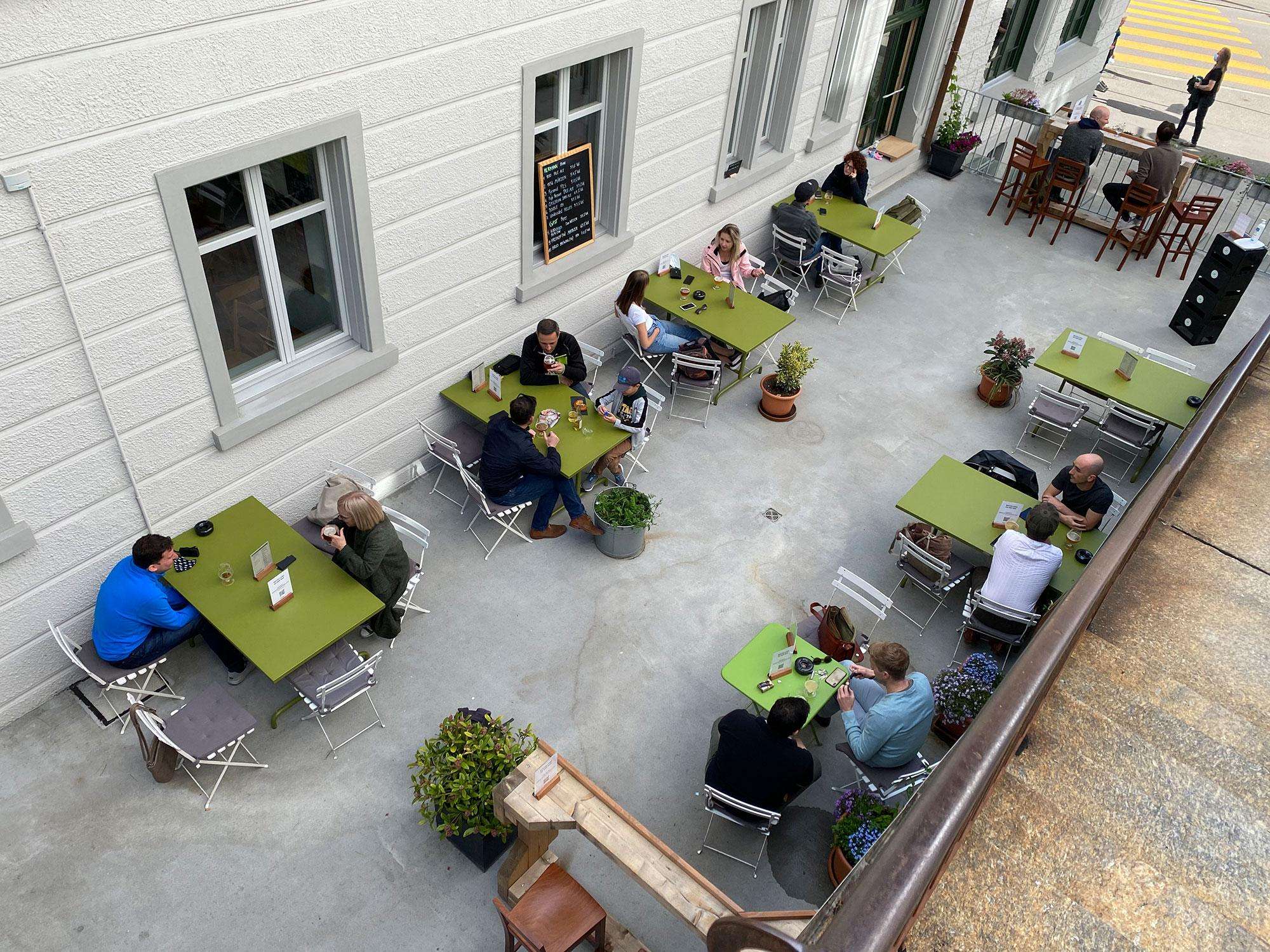 Im Hochparterre erwartet die Gäste ein gemütliches Lokal mit Holz-Bar. Hier gibt es vor Ort gebraute Biere wie auch Gastbiere - frisch gezapft ab bis zu 14 Zapfhahnen - zu geniessen. Im hinteren Teil des Lokals ist Platz für Degustationen. Ein kleines aber feines Speiseangebot rundet das Angebot ab.