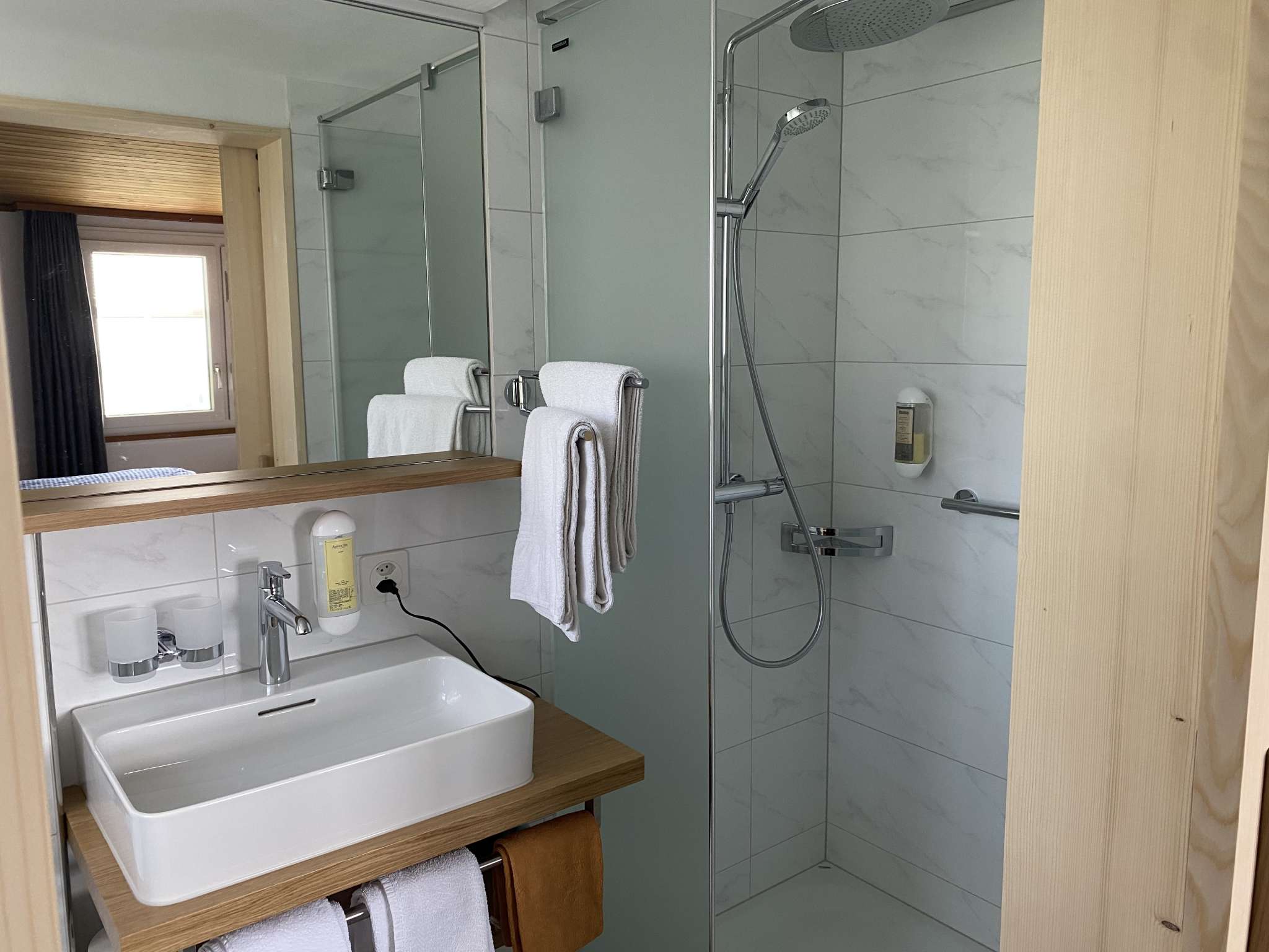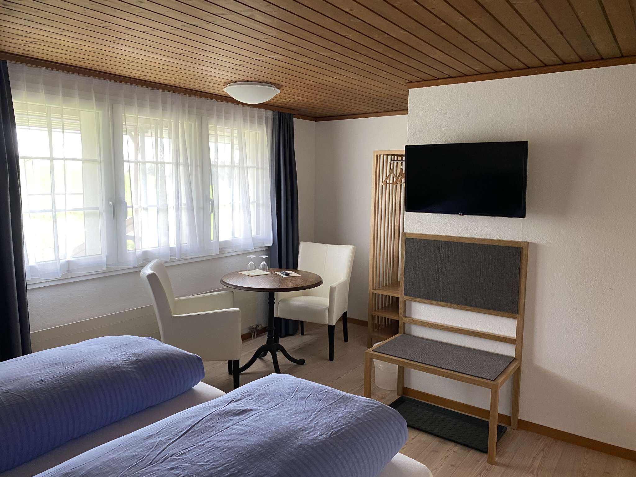 Die Hotelzimmer im Hirschen, geschmackvoll eingerichtet, sind hell und komfortabel. Jedes hat Dusche/WC, TV und Wifi. In jedem ist es ländlich still. Und aus den Fenstern sieht jeder Gast sein eigenes Stückchen Appenzell.