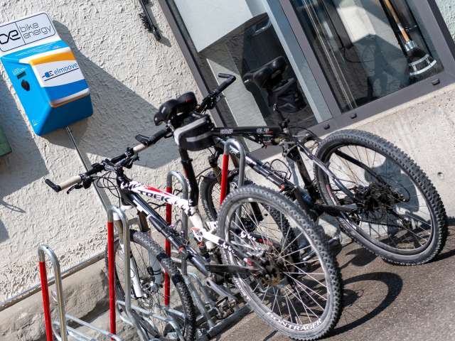 moderne Ladestation für E-Bikes sowie eine abschliessbare Velogarage mit kleiner Werkstatt (Velo-Werkzeug, Kompressor,...) inkl. Möglichkeit, Schuhe und Veloausrüstung aufzubewahren wie auch die Möglichkeit das Fahrrad zu reinigen, stehen zur Verfügung.