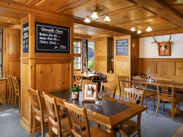 Kulinarisch lädt die Hirschen Stube zu regionaler Küche mit hochwertigen Zutaten und einer grossen Weinauswahl ein. Direkt daneben ergänzt das Event- & Fondue-Chalet Max das gastronomische Angebot mit sieben verschiedenen Chäs-Fondues – geöffnet jeweils in der Wintersaison.