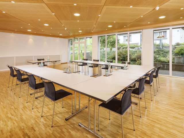 Weiter umfasst das Raumangebot 9 grosszügige und helle Seminar-, Tagungs- & Banketträume für bis zu 120 Personen. Gruppenräume sowie ein Platz im schattigen Hotelgarten stehen für Teamarbeit und Sitzungen ebenfalls zur Verfügung.