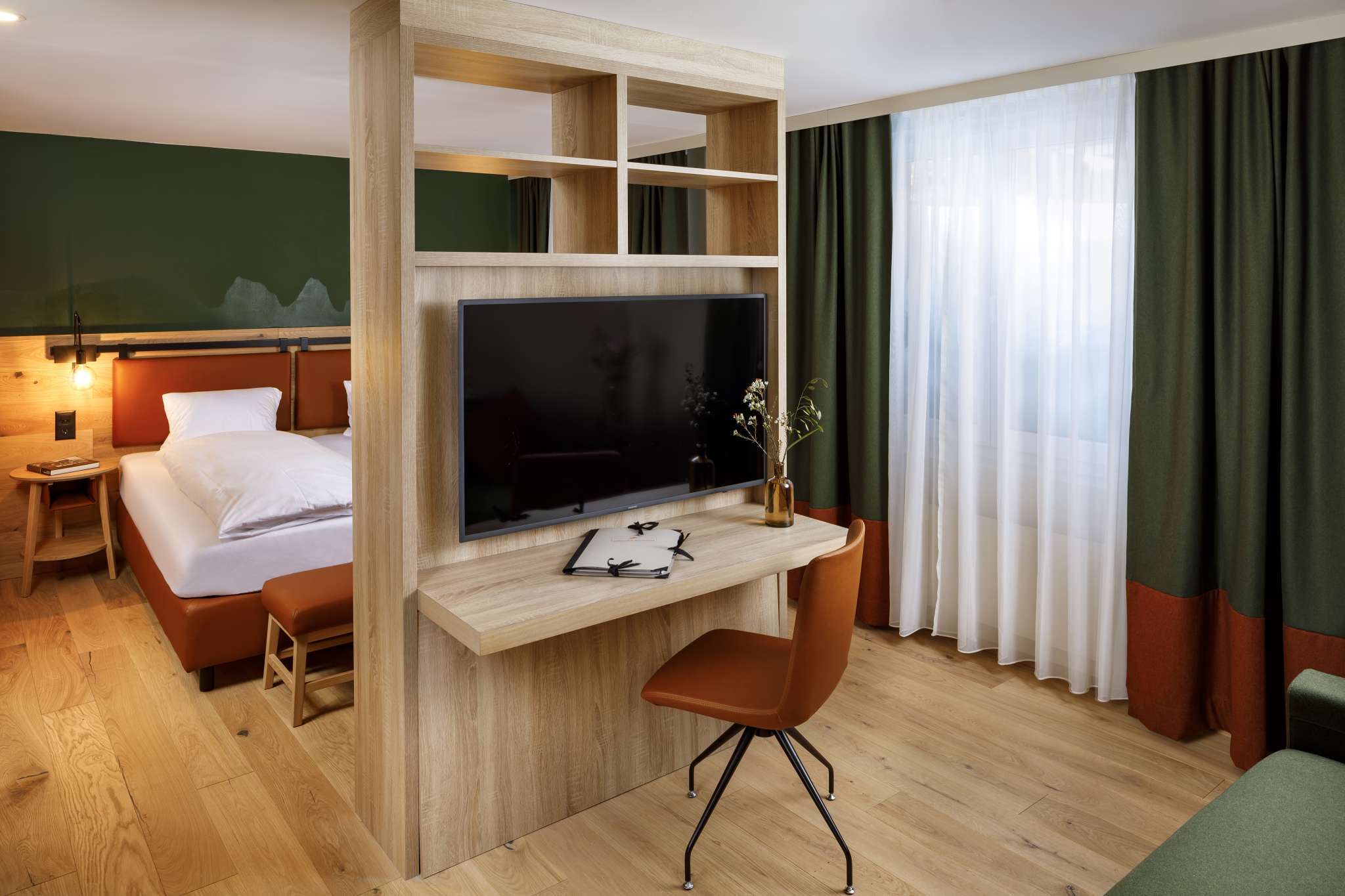 Das Hotel bietet insgesamt 69 Zimmer: 49 davon im Haupthaus, 10 weitere im Guest-House-Village und 9 im neu eröffneten Bellevue (seit 1. Juli 2025). Die Zimmer überzeugen durch modernen Komfort und einen schönen Ausblick – entweder in die Toggenburger Bergwelt oder in den hoteleigenen Park.
