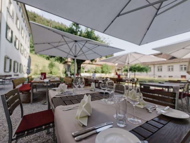 Das Kloster Fischingen ist ein historisches Hotel mit stimmigen barocken Räumen und somit der perfekte Austragungsort für jeden Event. Zugleich ist es ein touristischer Ort und beliebt bei Ausflüglern, die im Kloster ihre Ferien verbringen. Die kreativen Klosterköche verarbeiten mit Begeisterung, Zutaten aus dem Tannzapfenland. Für den ungezwungenen Aufenthalt steht den Gästen die Schenke zur Verfügung. Dort wartet eine Auswahl gekühlter PILGRIM-Klosterbiere auf Bierliebhaber*innen. Die 30 Gästezimmer sind ehemalige Mönchszellen. Die Zimmer begeistern mit ihrem klösterlichen Flair, das dezent gegenwärtig ist. Geburtstage, Jubiläen, Hochzeiten, Familienfeiern – die Klostergastronomie verfügt über vier verschiedene Räume, die individuell eingerichtet und je nach Feier geschmückt werden. Die klassischen Konzerte beschenken die Besucher mit kostbaren Glücksmomenten. Das Kloster Fischingen besitzt zwei Elektroautoladestationen und auch E-Bikes können auf dem Areal aufgeladen werden.