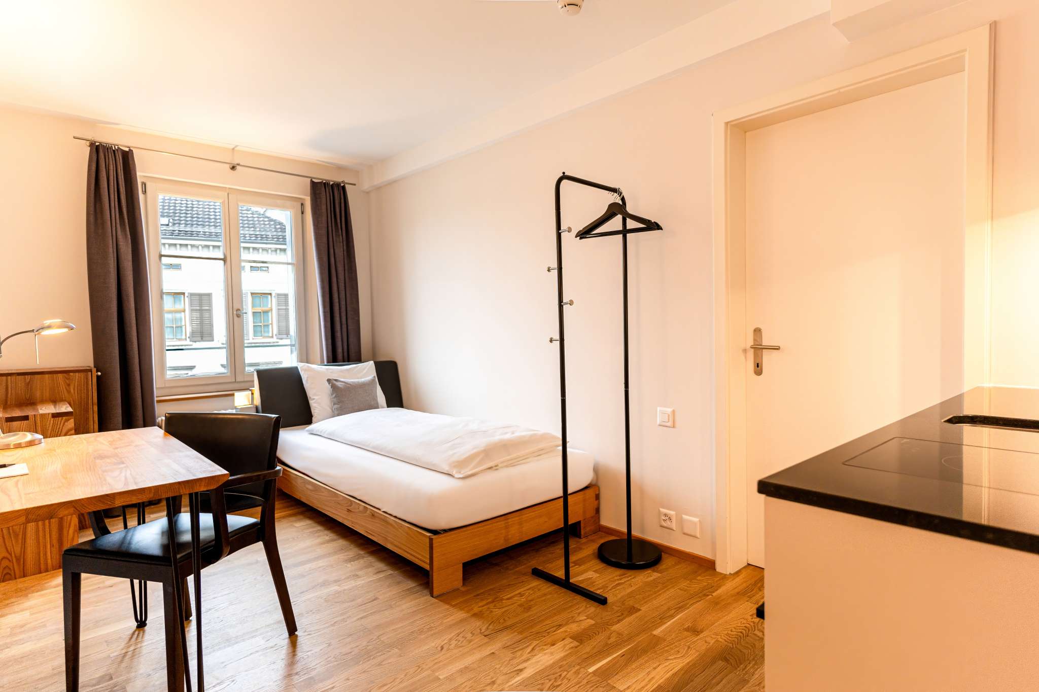 Das Hotel Le Lion Self Check-in mit 22 liebe- und stillvoll eingerichteten Zimmern bietet ein Zuhause auf Zeit. Ob Geschäftsreisende oder Touristen, in den Zimmern finden die Gäste alles, was für einen hohen Wohnkomfort für kurze oder längere Zeit notwendig ist. Dank dem Check-in Automaten ist das Check-in flexibel und unabhängig zu jeder Tages- und Nachtzeit möglich. Jedes Zimmer verfügt über eine voll ausgestattete Küche inkl. Nespresso-Kaffeemaschine und Wasserkocher.