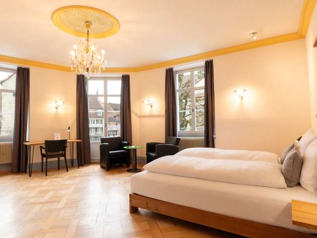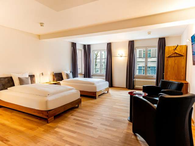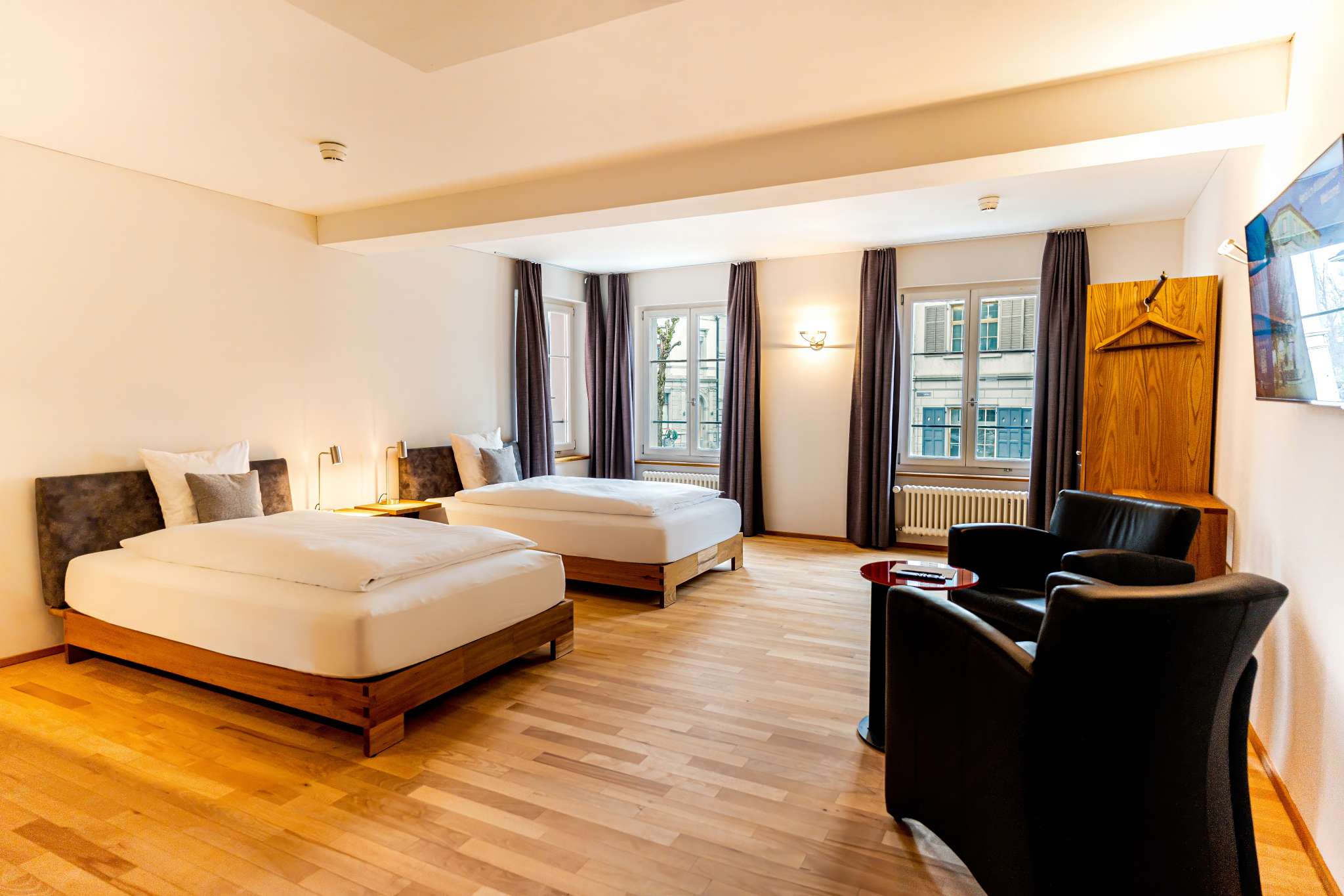 In einem beeindruckenden Gebäude mit einer herrschaftlichen Fassade befindet sich das Exklusivhotel in der Innenstadt von Bischofszell. Der Bahnhof Stadt Bischofszell ist nur 2 Gehminuten davon entfernt.