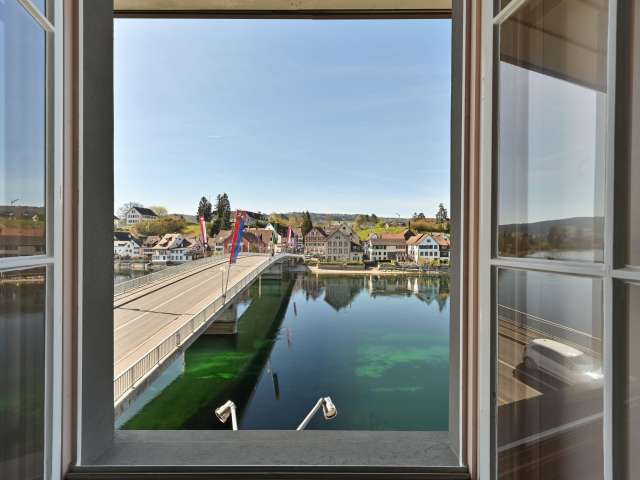 Unmittelbar am Rhein auf der Terrasse oder in den geschichtsträchtigen Räumlichkeiten lassen sich gemütlich die regionalen Gerichte und die französische Kochkunst, wie auch die wunderbare Landschaft geniessen. 40 Autominuten nördlich von Winterthur.