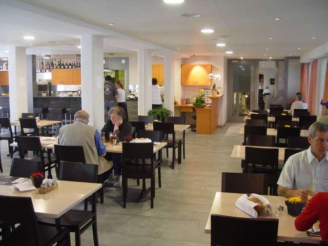 Im öffentlichen Restaurant mit Gartenterrasse werden regionale, internationale und gutbürgerliche Speisen serviert – perfekt für Sportlerinnen und Sportler sowie für erholungssuchende Gäste.