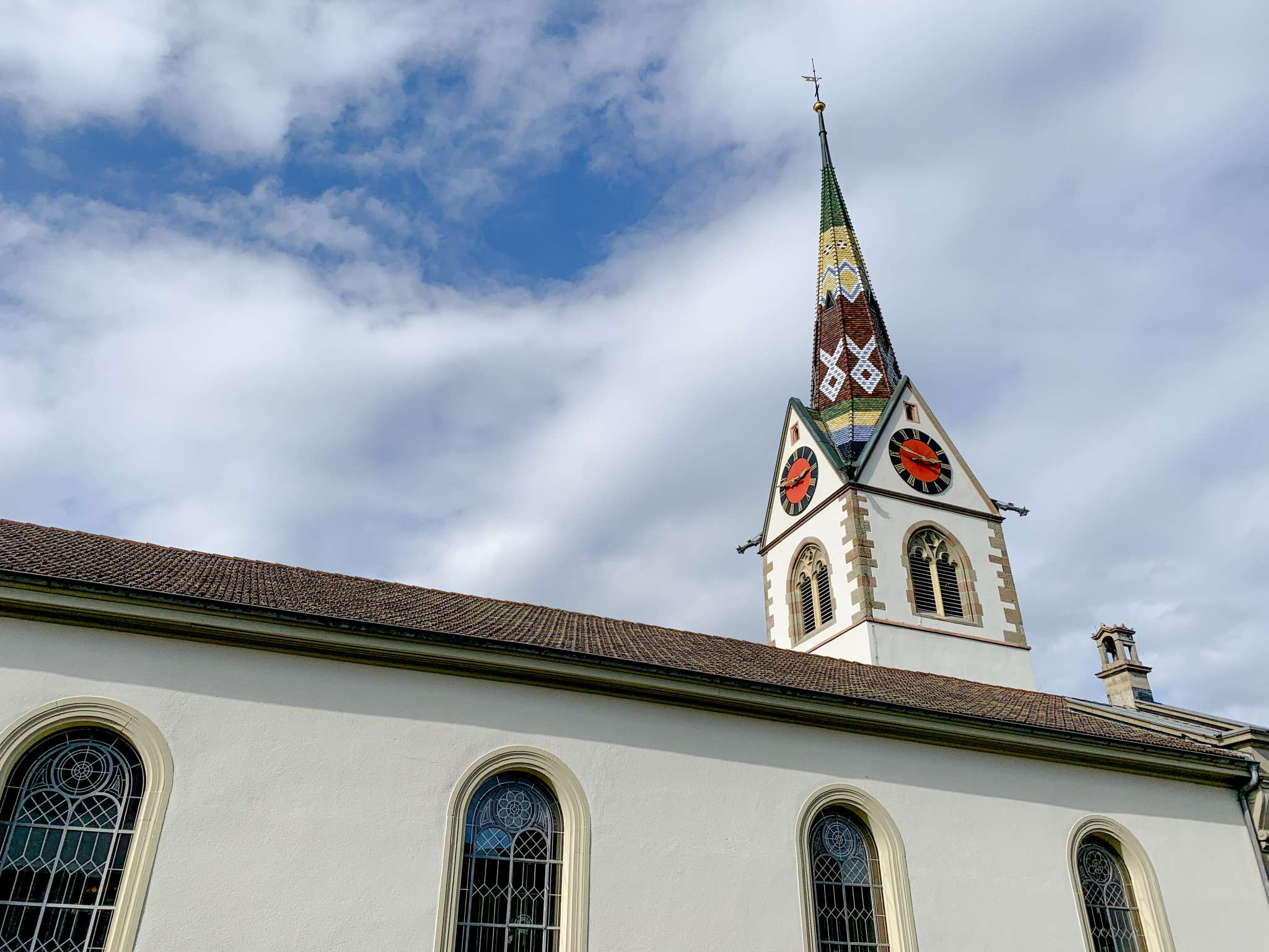 1901 wurde der spitze Kirchturm erstellt, der heute durch seine farbigen Ziegelmuster auffällt. Dabei wurde auch das vierstimmige Geläut erneuert. Eine fünfte Glocke von 1608 blieb zuoberst im Glockenstuhl erhalten, das Chriesiglöckli.