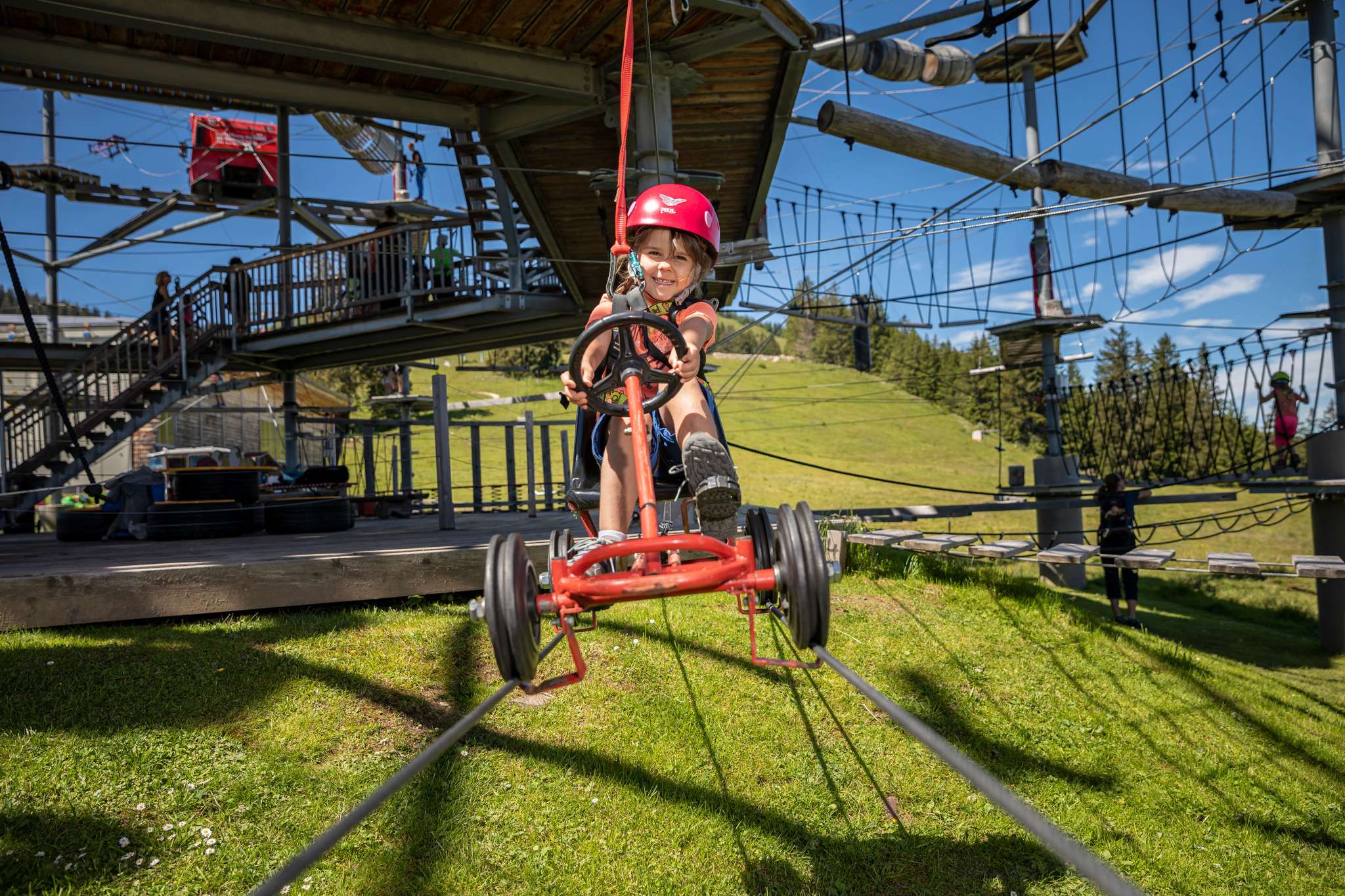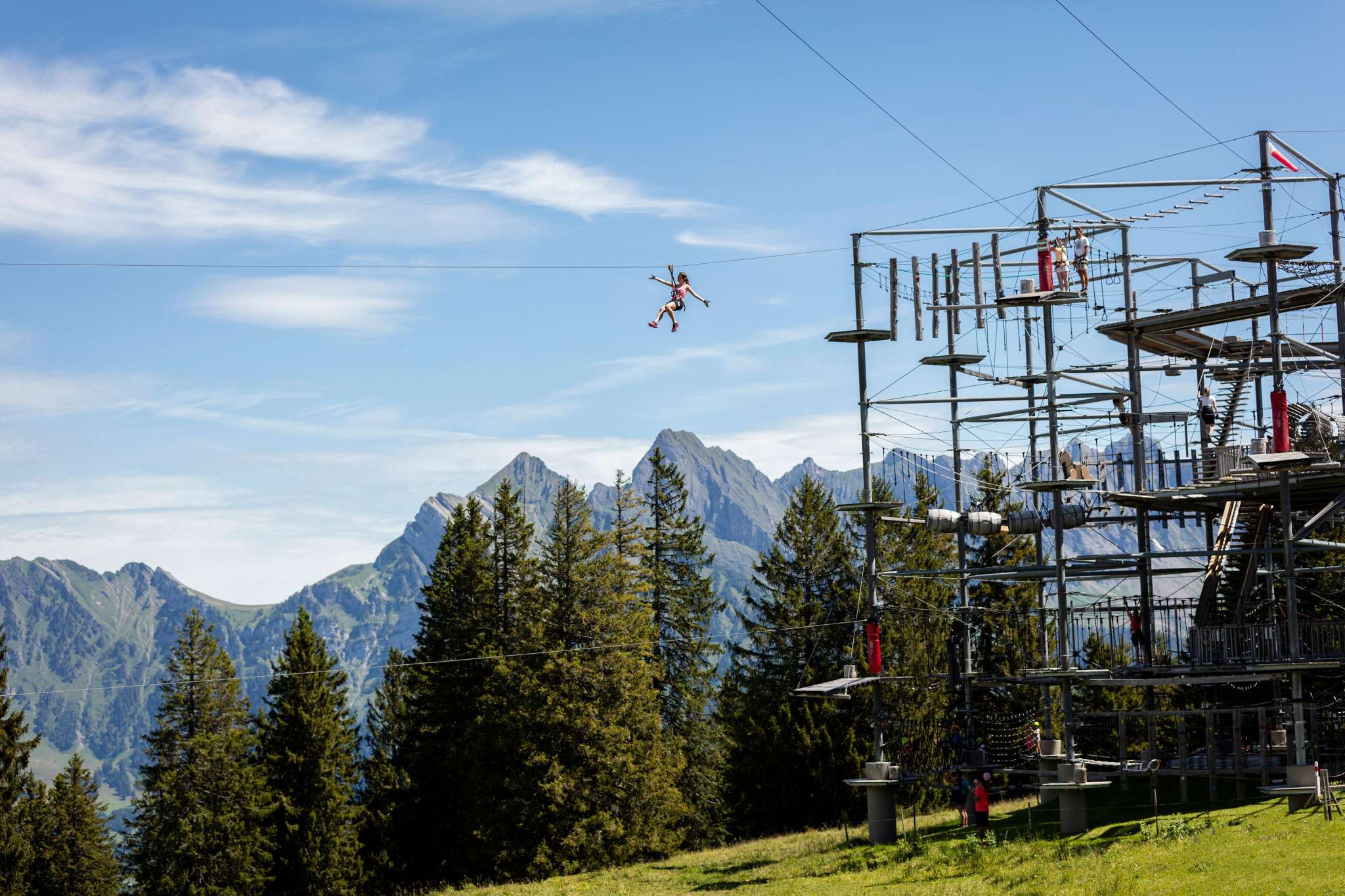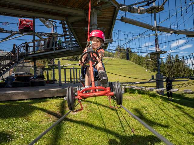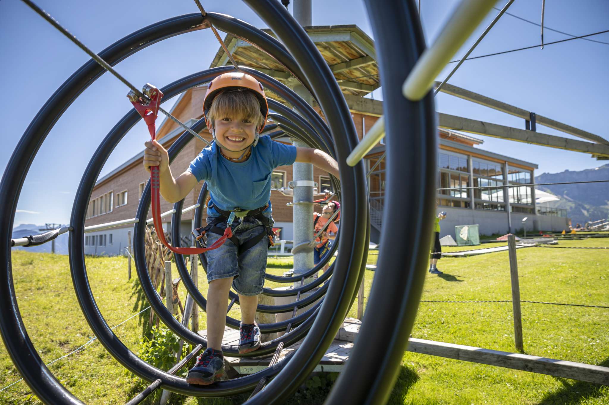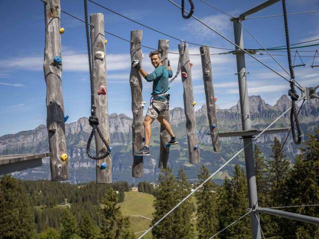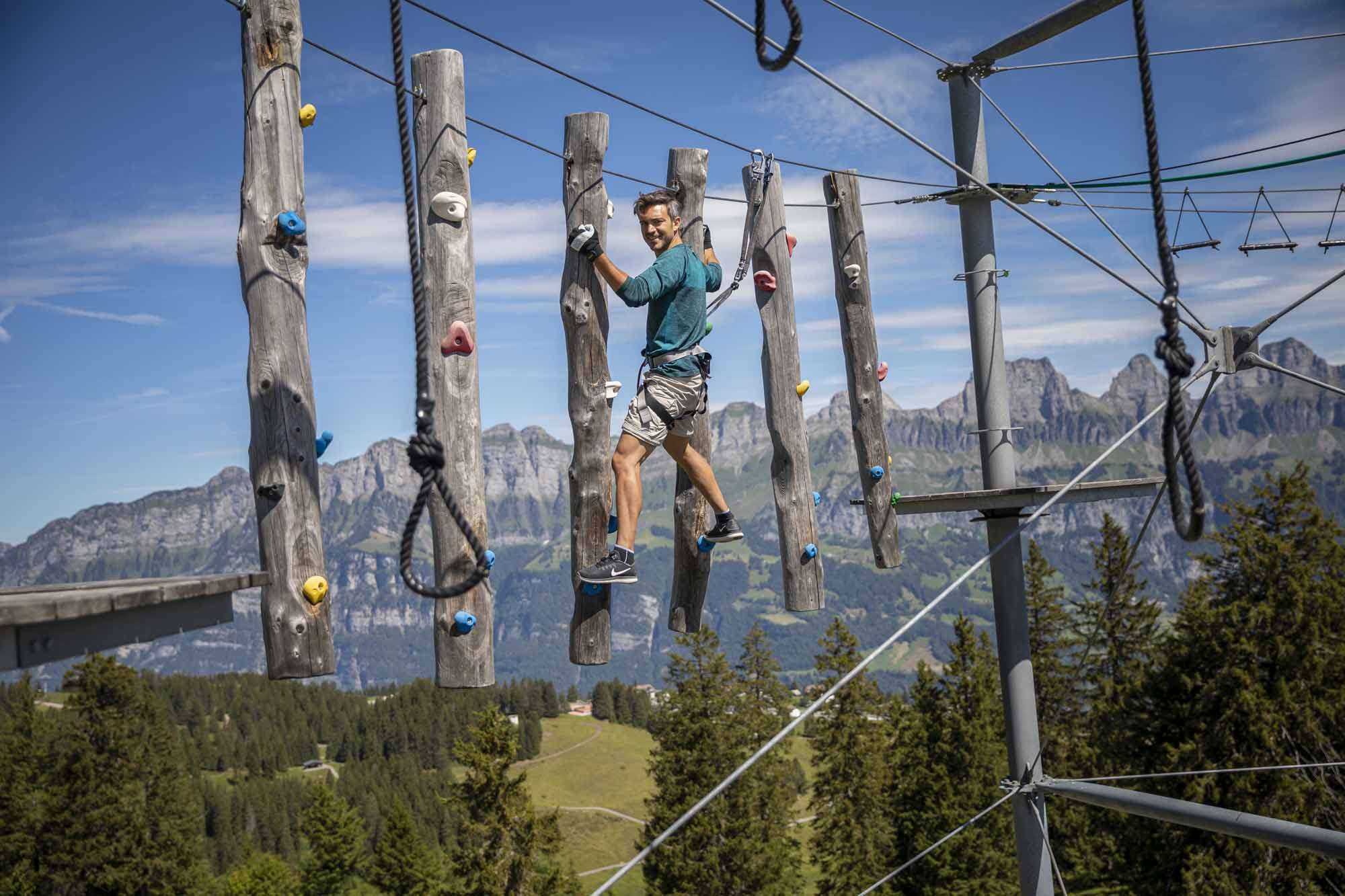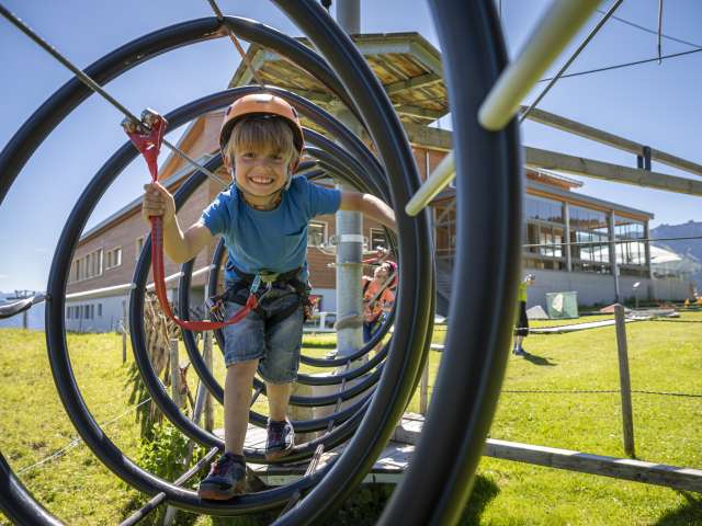 Lass dich ab den oberen Etagen vom Kletterturm in die Weite tragen und schwebe mit dem flyingCLiiMBER auf 6 verschiedenen Linien, auf über 15 Meter Höhe und 700 m Länge. Spüre den Wind und geniesse die herrliche Aussicht. Dieses Erlebnis ist nur für Personen die grösser als 1.40 m sind erlaubt.