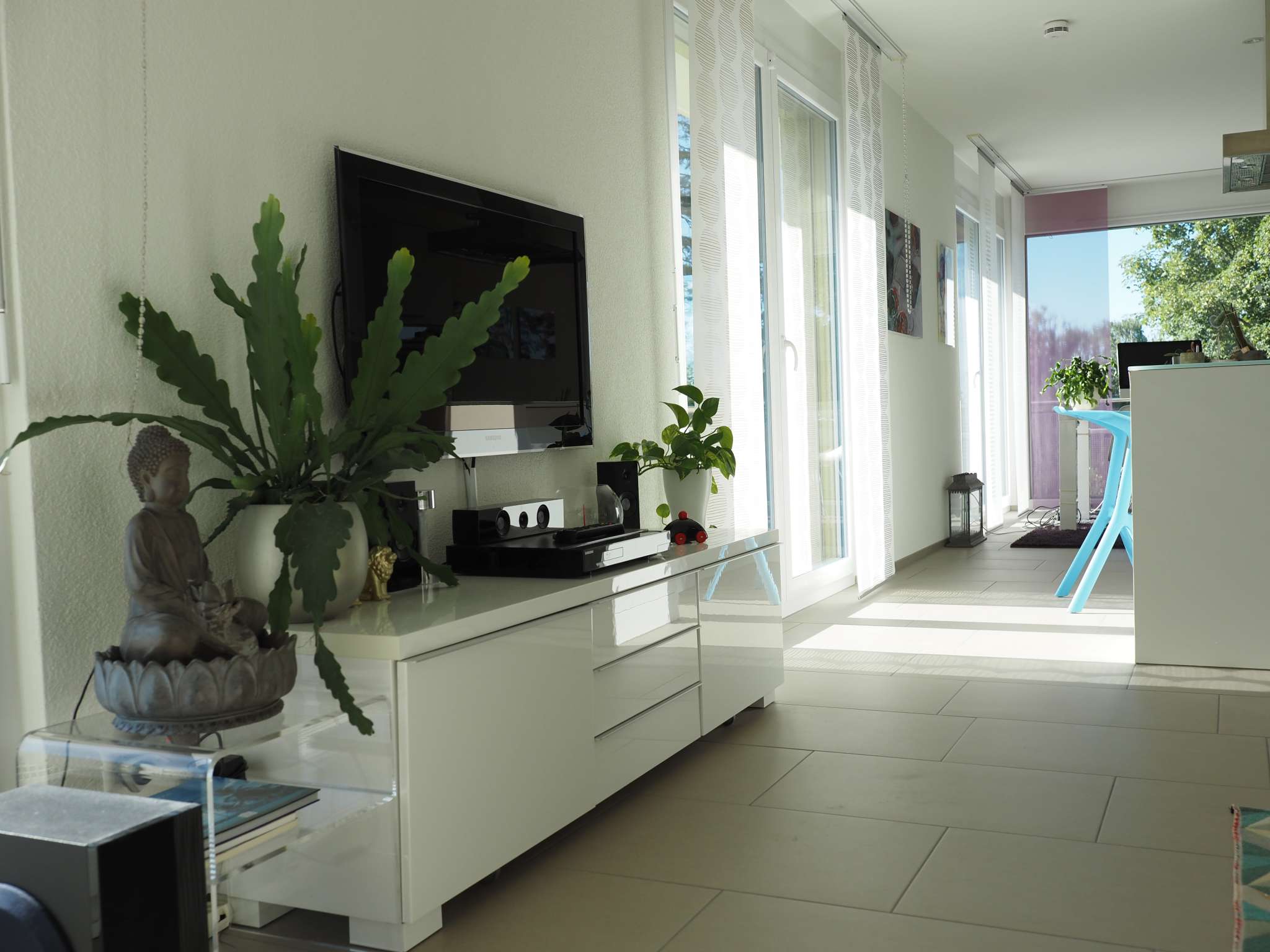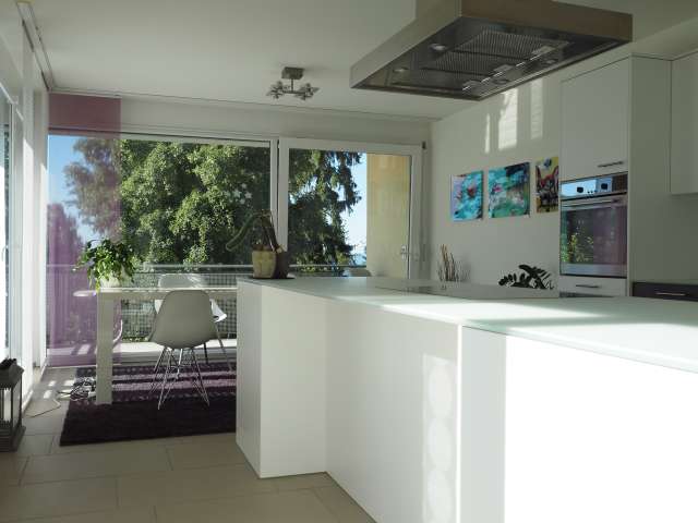 Die schöne und attraktive 3 ½ Zimmerwohnung befindet sich im 1. OG mit Aussicht auf den Bodensee. Mit 105 m2 ist die Ferienwohnung sehr komfortabel und umgibt eine 27 m2 Loggia mit Zugang aus jedem Zimmer.