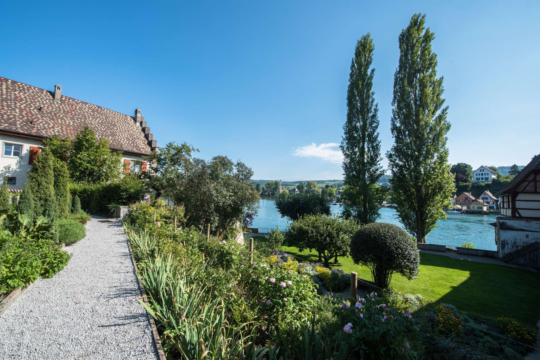 Der Klostergarten mit seiner idyllischen Lage am Rhein ist Teil des Museumsbesuchs.