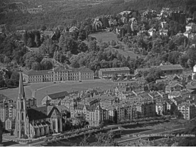Die Kreuzbleiche bleibt trotz Bauboom ein grosses unbebautes Areal, was vor allem mit der militärischen Nutzung zusammenhängt: In den 1860er Jahren wurde das Gebiet Brühl im Osten der Stadt für militärische Übungen zu klein und man sah sich deshalb gezwungen, auf die Kreuzbleiche auszuweichen. Schon 1865 gab es Pläne für den Bau einer Kaserne die schliesslich 1875/76 realisiert wurde. Diese musste 1980 der Autobahnausfahrt weichen, aber das ehemalige Offiziersgebäude von 1901/02 steht noch immer auf der Kreuzbleiche. Das Gebäude wurde im Gegensatz zur streng klassizistischen Kaserne als opulentes Jagdschlösschen mit Türmchen, Erkern sowie einer verspielten Dach- und Fassadengestaltung erbaut. Heute befindet sich ein Hotelbetrieb mit Restaurant im Gebäude.
