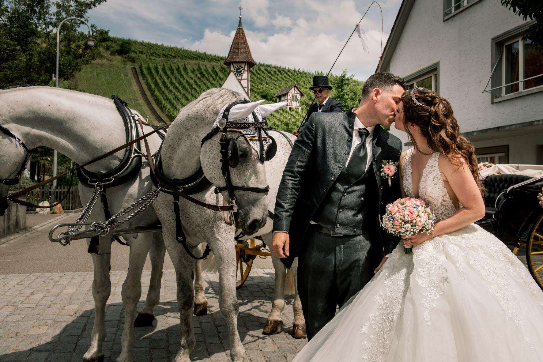 Sie geniessen bei uns vor der Abfahrt einen Apéro, während wir unser Schimmel einspannen.