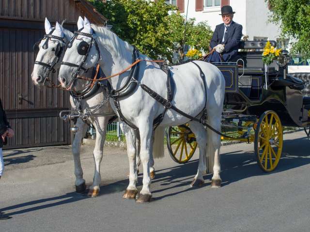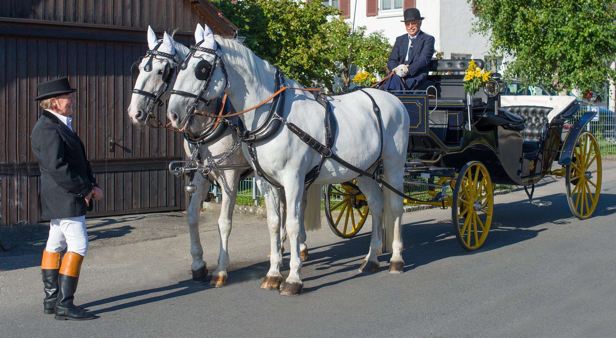 Mit dem noblen Landauer fahren wir für Jubilare, Geburtstage und Hochzeiten. Darin sieht man die Gäste gut, ideal für schöne Fotos.