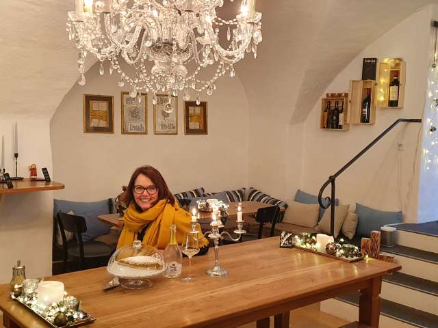 Im schönen Gewölbekeller im Haus zur Wahrheit befindet sich das La verità. In dem historischen Gebäude erinnert die alte Stadtmauer an längst vergangene Zeiten. Am langen Tisch, wo man isst und trinkt, plaudert und lacht, treffen Einheimische und Touristen aufeinander.