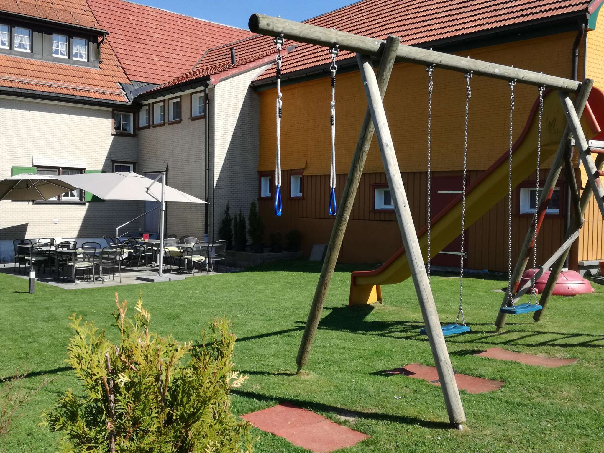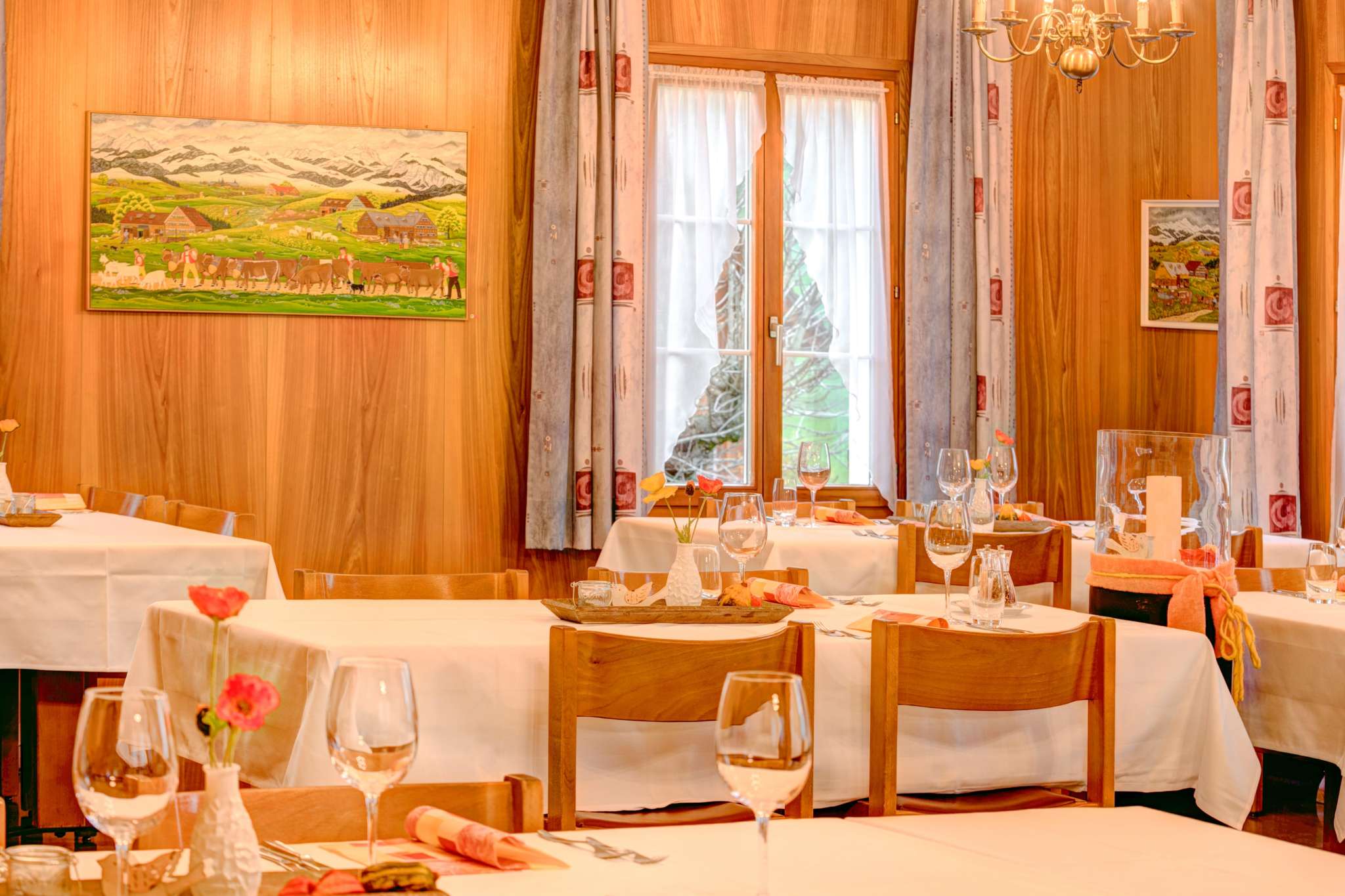 Ruhig gelegener Familienbetrieb, drei Kilometer von Appenzell entfernt. Gemütliche Zimmer mit Dusche/WC und TV. Idealer Ausgangspunkt für Wanderungen und Biketouren. Gemütliches Restaurant und Gartenterrasse mit Kinderspielplatz. Vorzügliche, saisonale Küche. Der Parkplatz befindet sich direkt vor dem Haus.