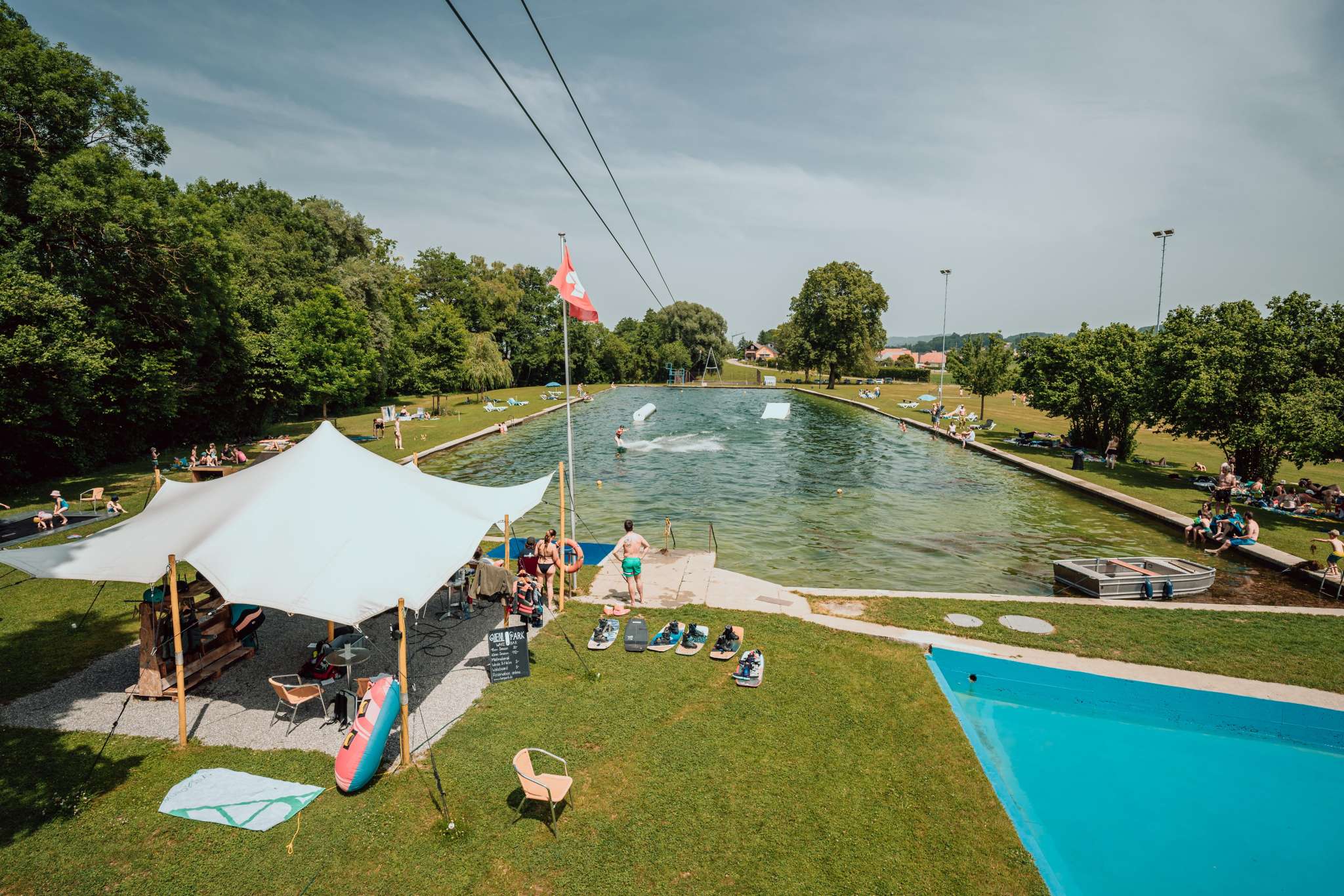 Im Lieni Park zwischen Winterthur und Frauenfeld treffen Gäste auf eines der ältesten Bäder der Schweiz, auf eine moderne Wakeboardanlage, ein motivierendes Sport- und Eventangebot und frische und regionale Karten in Foodtruck und Schirmbar.