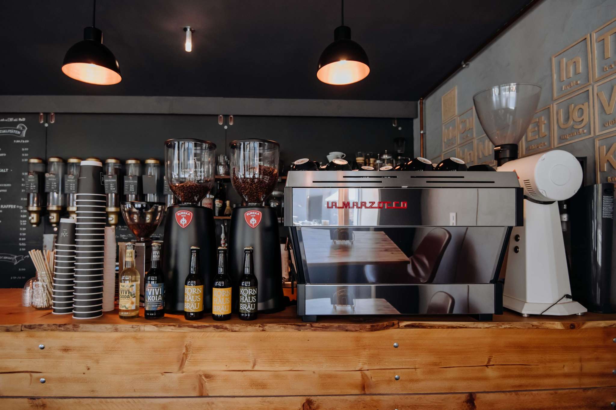 Im Café stehen unzählige klassische und nicht so klassische Kaffeegetränke, interessante Mischdrinks aus aller Welt sowie auserlesene Tees, inklusive japanischem Bio-Matcha zur Auswahl.