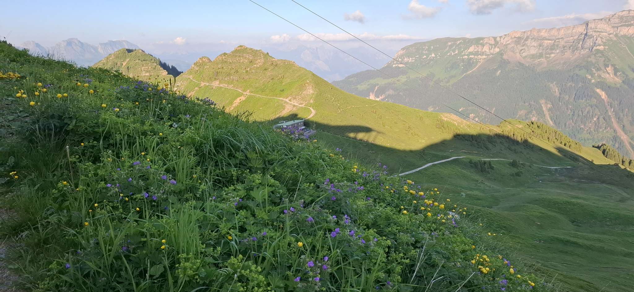 Geniessen Sie im Sommer den herrlichen Ausblick über Alpweiden und Bergspitzen und beobachten Sie die Murmeltiere von unserer Terrasse aus!