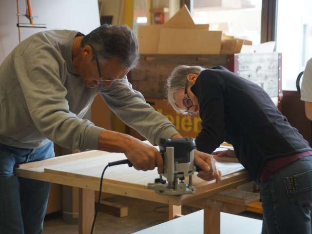 In den Workshops kommen beide Techniken zum Einsatz. Die Teilnehmenden arbeiten mit Schreinermaschinen und traditionellen Werkzeugen und erhalten wertvolle Tipps von versierten Handwerkern. Unter fachkundiger Anleitung entstehen einzigartige Massivholzstücke – vom klassischen Schneidebrett über eine stilvolle Sommerliege bis hin zu einem modernen Weihnachtsbaum.