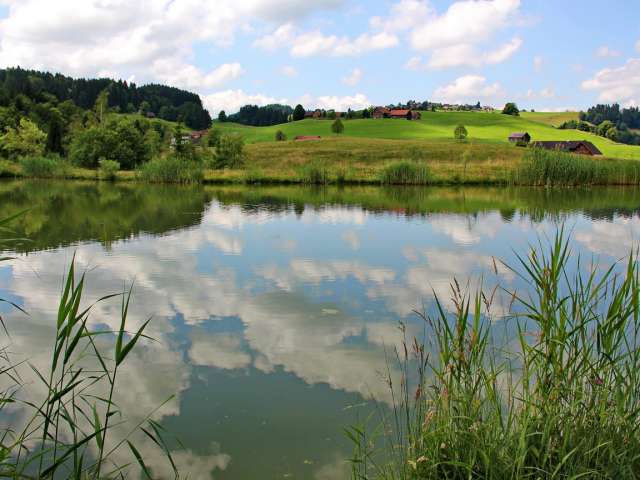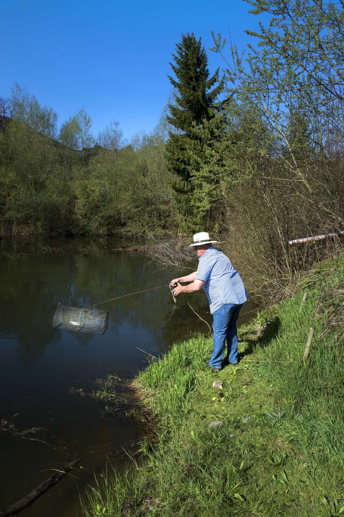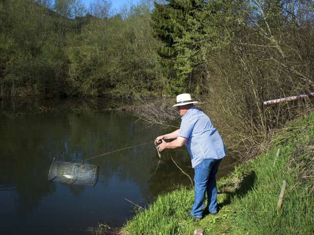 Ein ganz besonderes Erlebnis ist der Besuch dieser Bachforellenzucht inmitten von 6 Hektaren malerischer Landschaft. Klaus Signer hat die einstige Kiesgrube von seinen Eltern übernommen und erzählt voller Herzblut viel Spannendes über sein Hobby. Er füttert die Fische täglich von Hand mit Biofutter, kontrolliert das sprudelnde Wasser, das für den Sauerstoff im Teich sorgt und reinigt die Becken.