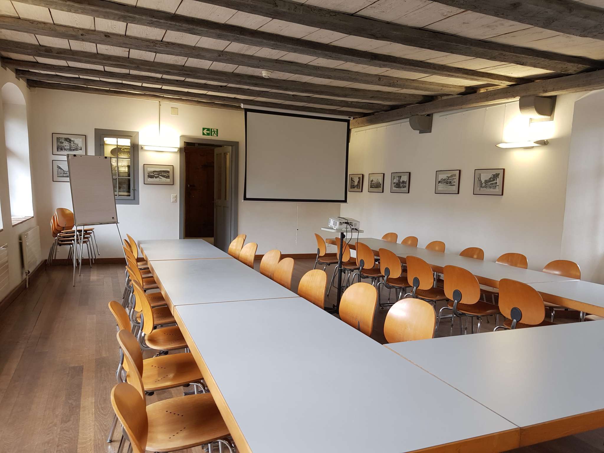 Im historischen Gewölbekeller des Museums sowie im angrenzenden Innenhof mit Barockgarten und dem darin liegenden Häuschen «Schniderbudig» darf heute gefeiert und getagt werden. Vor mehr als 400 Jahren war die Schniderbudig Tuchhaus für den Leinwandhandel. Heute steht sie für Veranstaltungen zur Verfügung und bietet Mobiliar für bis zu 70 Personen sowie eine professionelle Küche.