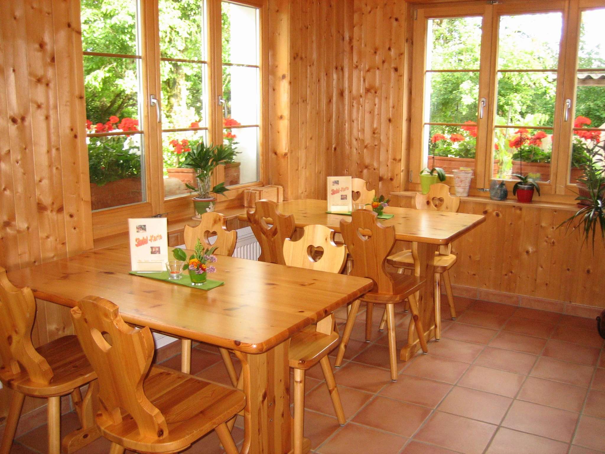 Gästebewirtung am Wochenende, Platz innen und aussen ca. 45 Pers. (rollstuhlgängig). Geniessen Sie ein Vesperplättli, hausgemachtes Bauernbrot oder eine Treberwurst. Ebenfalls werden hauseigene Weine im Offenausschank serviert.