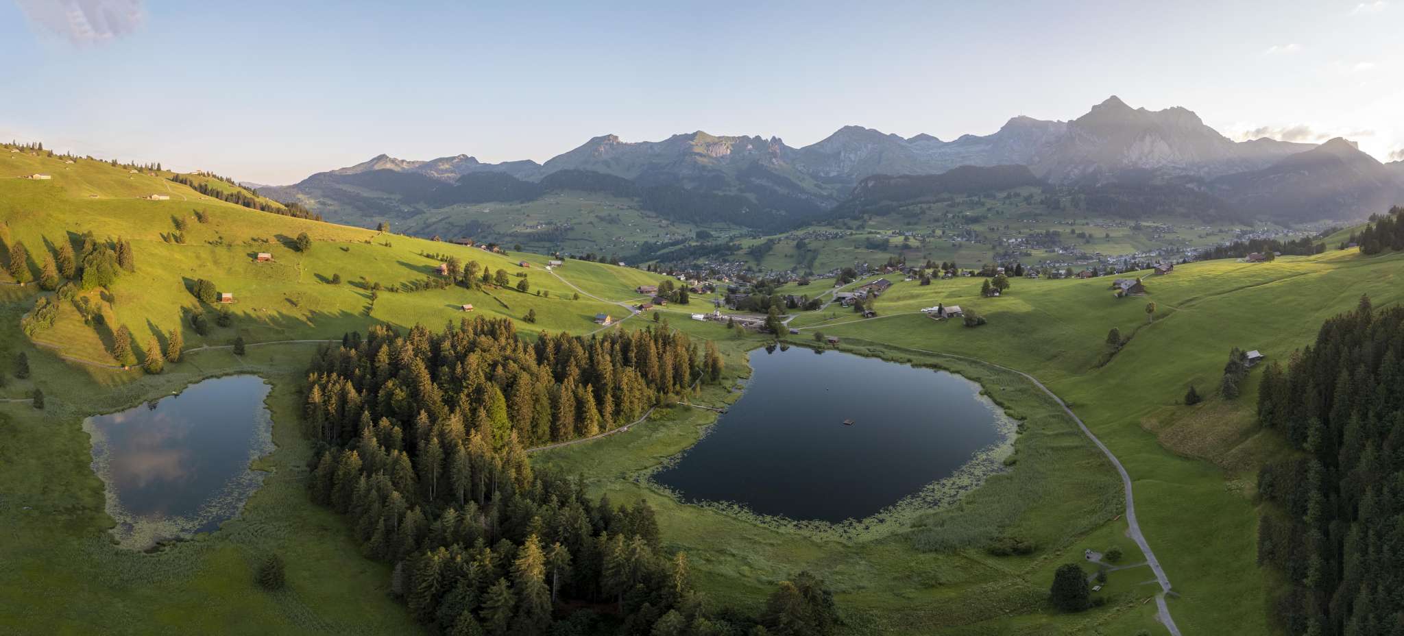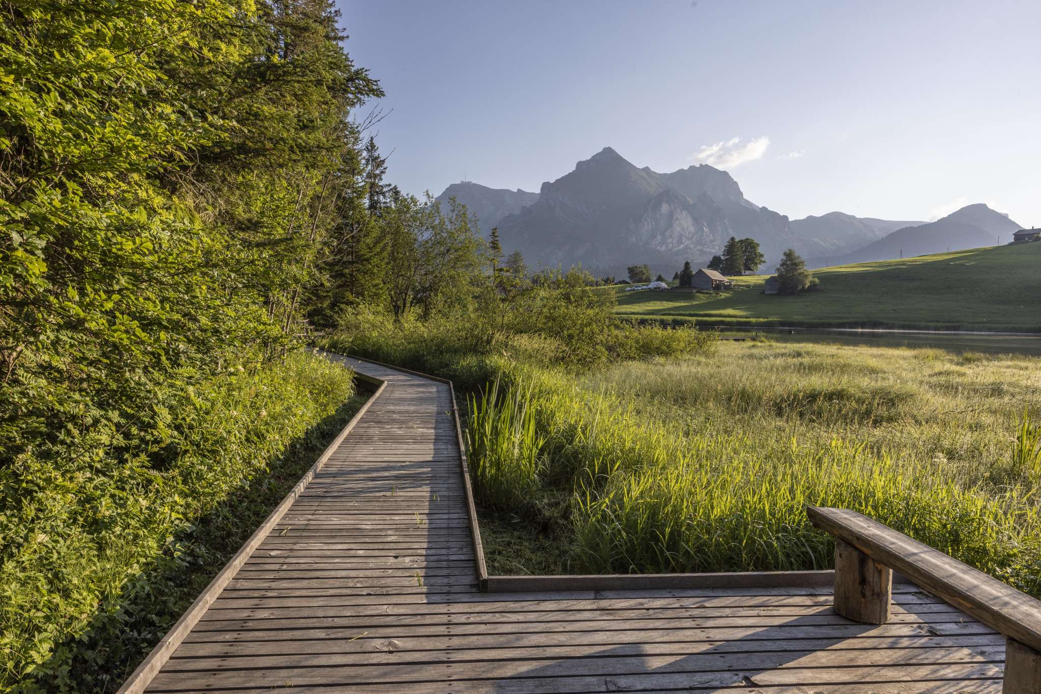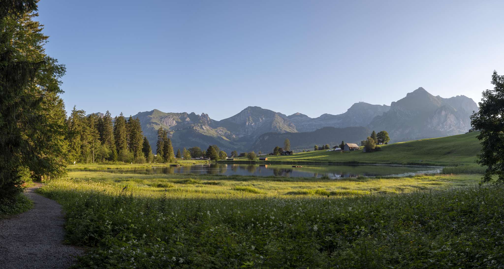 Als der Schwendigletscher vor rund 14'000 Jahren abzutauen begann, hinterliess er eine Mulde, in der die Seen aufgestaut wurden. Hauptsächlich durch die Verlandung der Seeufer entstanden in den folgenden Jahrtausenden die Moore, die zwischen Mai und September blühen. Erfahren Sie auf einem gemütlichen Spaziergang entlang des Naturerlebnispfades mehr über Landschaftsgeschichte, Tierwelt, Wald und Pflanzenwelt. Baden auf eigene Gefahr.