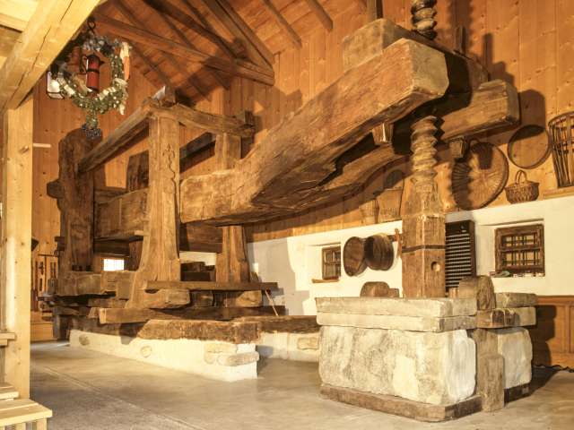 Gegenstände aus dem Reb- und Obstbau, der Landwirtschaft, der Küferei, der Töpferei und aus Grossmutter's Zeiten legen Zeugnis von der geschichtlichen Vergangenheit ab. Zur Sammlung gehört auch eine funktionsfähige Seilerei, welche sogar auswärts vorgeführt werden kann. Im nebenstehenden Torkelgebäude, das für Empfänge, Hochzeiten und Apéros benutzt wird, dominiert ein prächtiger Torkelbaum aus dem Jahr 1682. Dieses Museum empfängt Sie in Deutsch und Französisch und wurde 1976 eröffnet.