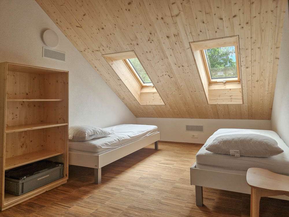 Die drei Schlafräume und ein Leiterzimmer bieten insgesamt 30 Schlafplätze, die Küche und der Aufenthaltsraum sind für bis zu 60 Personen ausgelegt.