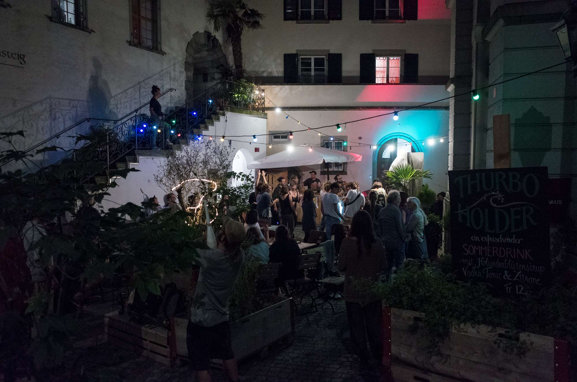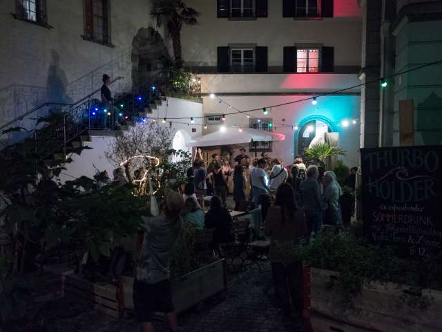 Hier treffen die Kulturschaffenden und die Bevölkerung in einer inspirierenden Umgebung aufeinander. Sie tauschen sich aus, initiieren neue Projekte und entwickeln bestehende weiter. Im Rathaus für Kultur finden sich Ateliers und Proberäume, die Dogo Residenz für Neue Kunst und die Rathaus Stube, ein kleiner, aber feiner gastronomischer Betrieb. Das Haus ist öffentlich zugänglich. Alle Besuchenden sind eingeladen zu verweilen und die regelmässig stattfindenden Veranstaltungen zu geniessen oder Raum für ein eigenes Projekt zu mieten. Durch die vielfältige Nutzung wird das Rathaus und seine Umgebung belebt.