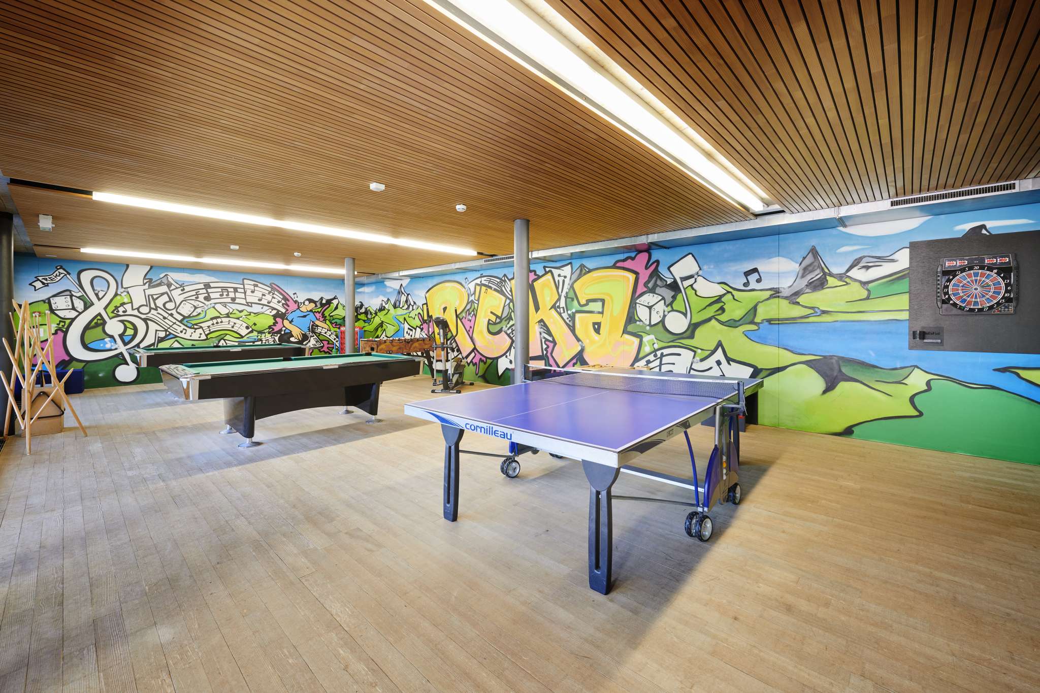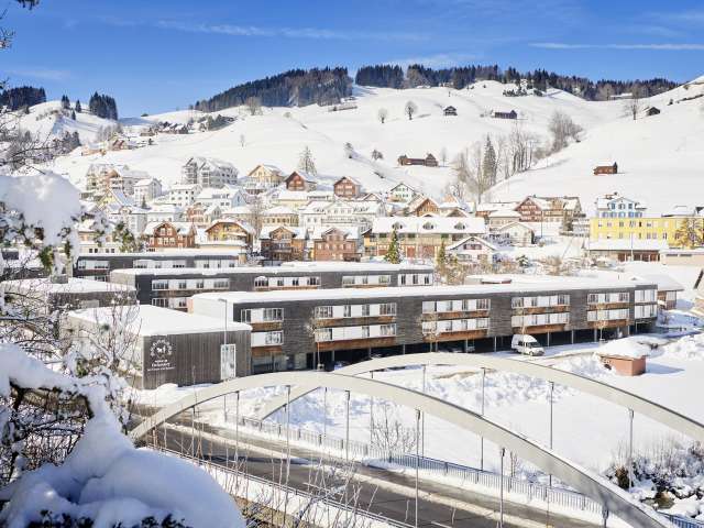 Im Reka-Feriendorf Urnäsch finden in den Minergiehäusern, die aus einheimischem Holz gebaut wurden, 50 Familien Platz (Wohnungen mit 2 1/2 bis 5 1/2 Zimmern mit Balkon oder Sitzplatz). In unserem Kleintierstall und Streichelzoo bekommen Kinder die Möglichkeit, mit den tierischen Bewohnern des Feriendorfs auf Tuchfühlung zu gehen. Die Kinder können mit verschiedenen Tieren in Berührung kommen, sie füttern, streicheln und näher kennenlernen. Hallenbad mit Kinderplantschbecken und Saunalandschaft, zahlreiche Gemeinschaftsräume sowie verschiedene Spiel- und Sportplätze im Freien, inkl. eines grossen Trampolins, bieten unendlich viele Vergnügungsmöglichkeiten.